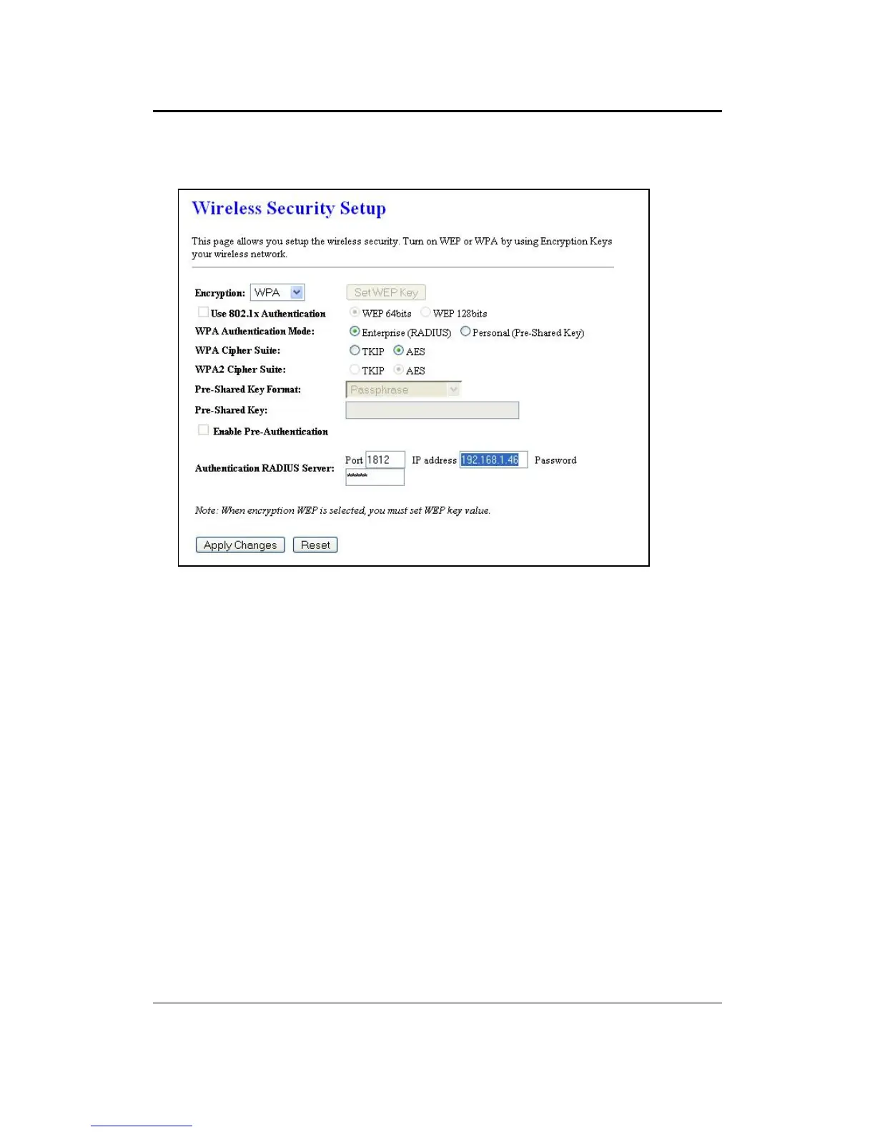 WPA Authentication Mode: Select the Enterprise (RADIUS) radio button.