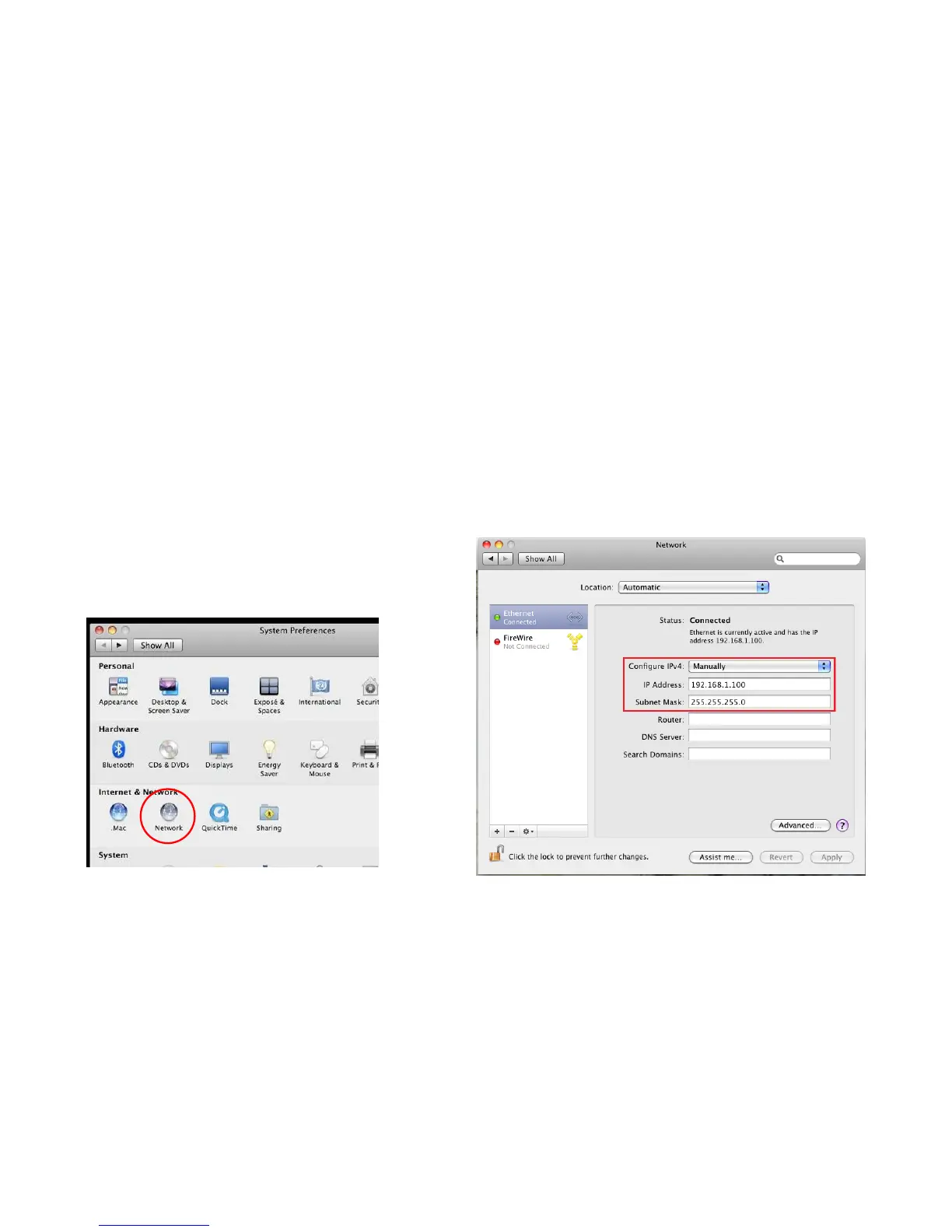 Note: Ensure that the IP address and subnet mask are on the same subnet as the device.