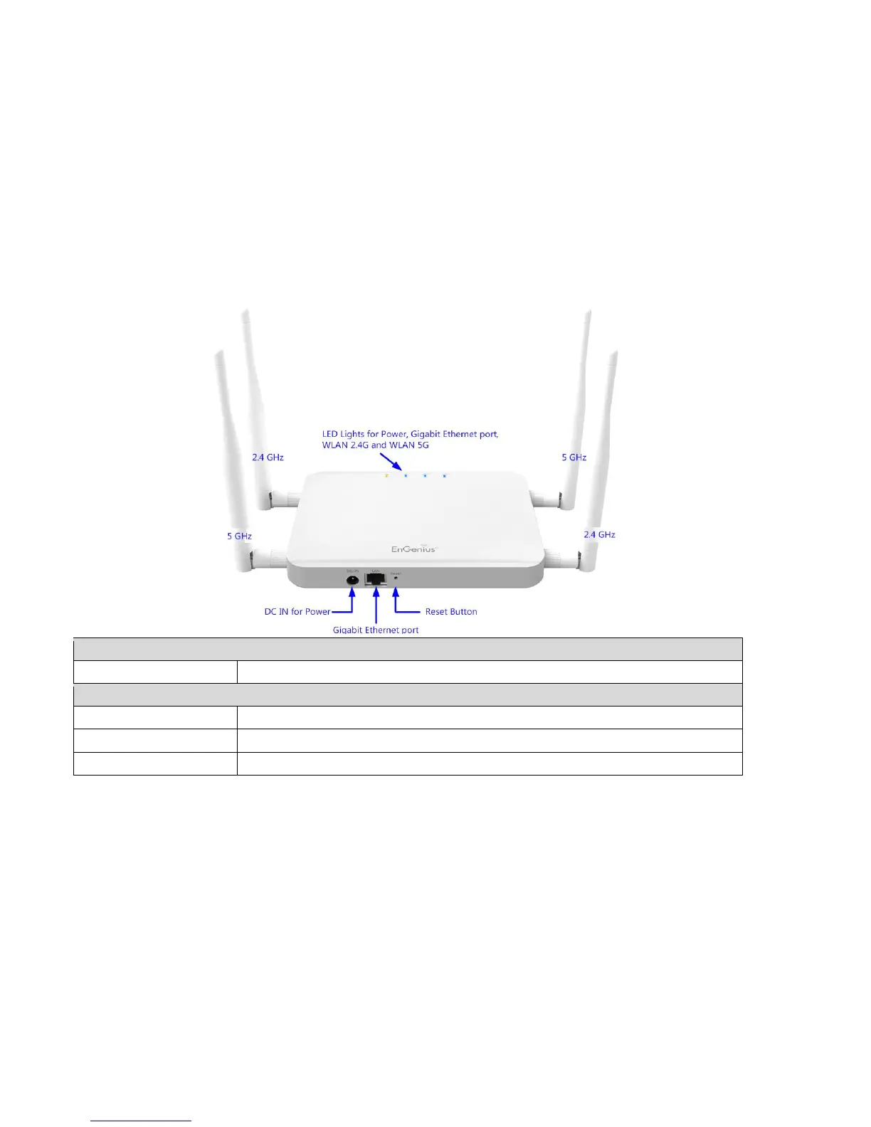 LED lights for Power, Gigabit Ethernet port, WLAN 2.4GHz and WLAN 5GHz.