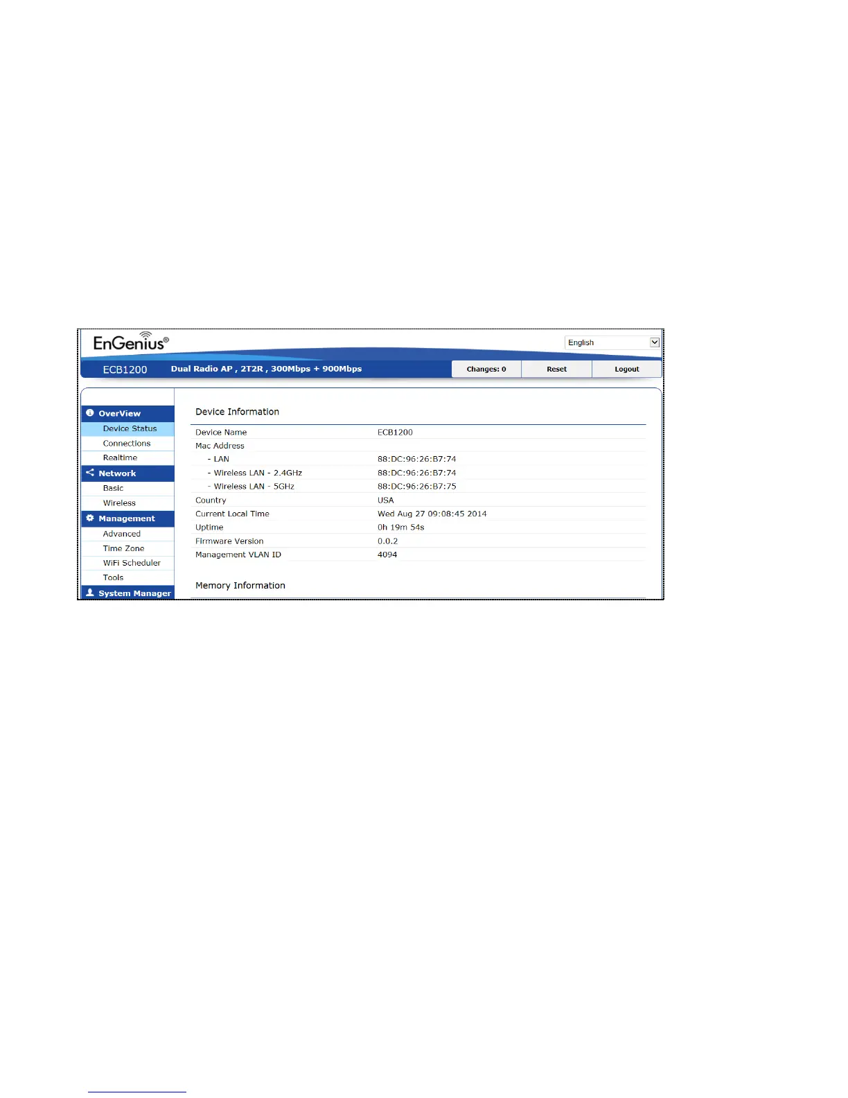 If successful, you will be logging in and see the ECB1200 User Menu.
