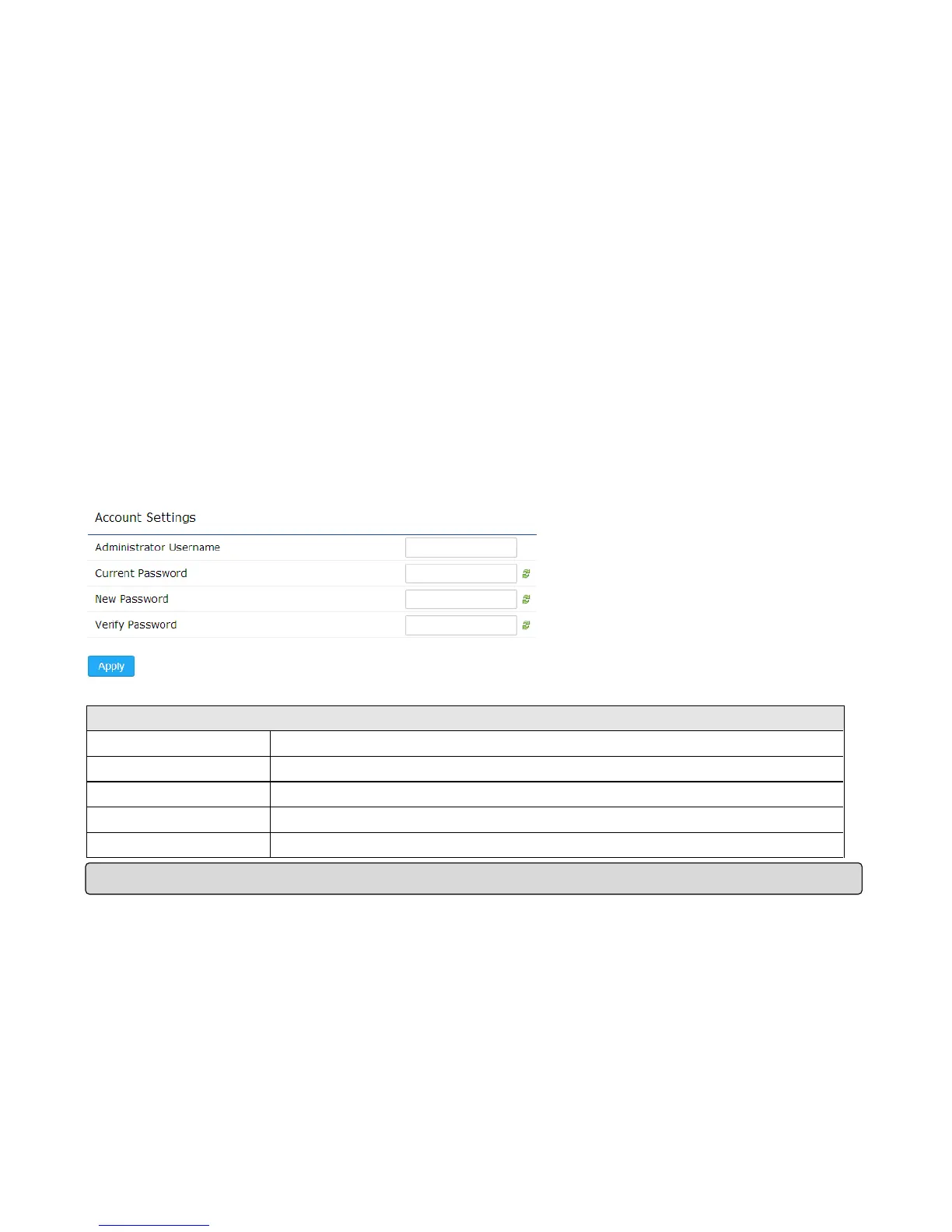 This page allows you to change the ECB1200 username and password. By default, the username is admin and the