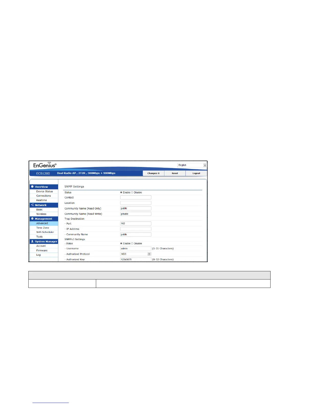 This page allows you to assign the Contact Details, Location, Community Name, and Trap Settings for Simple Network