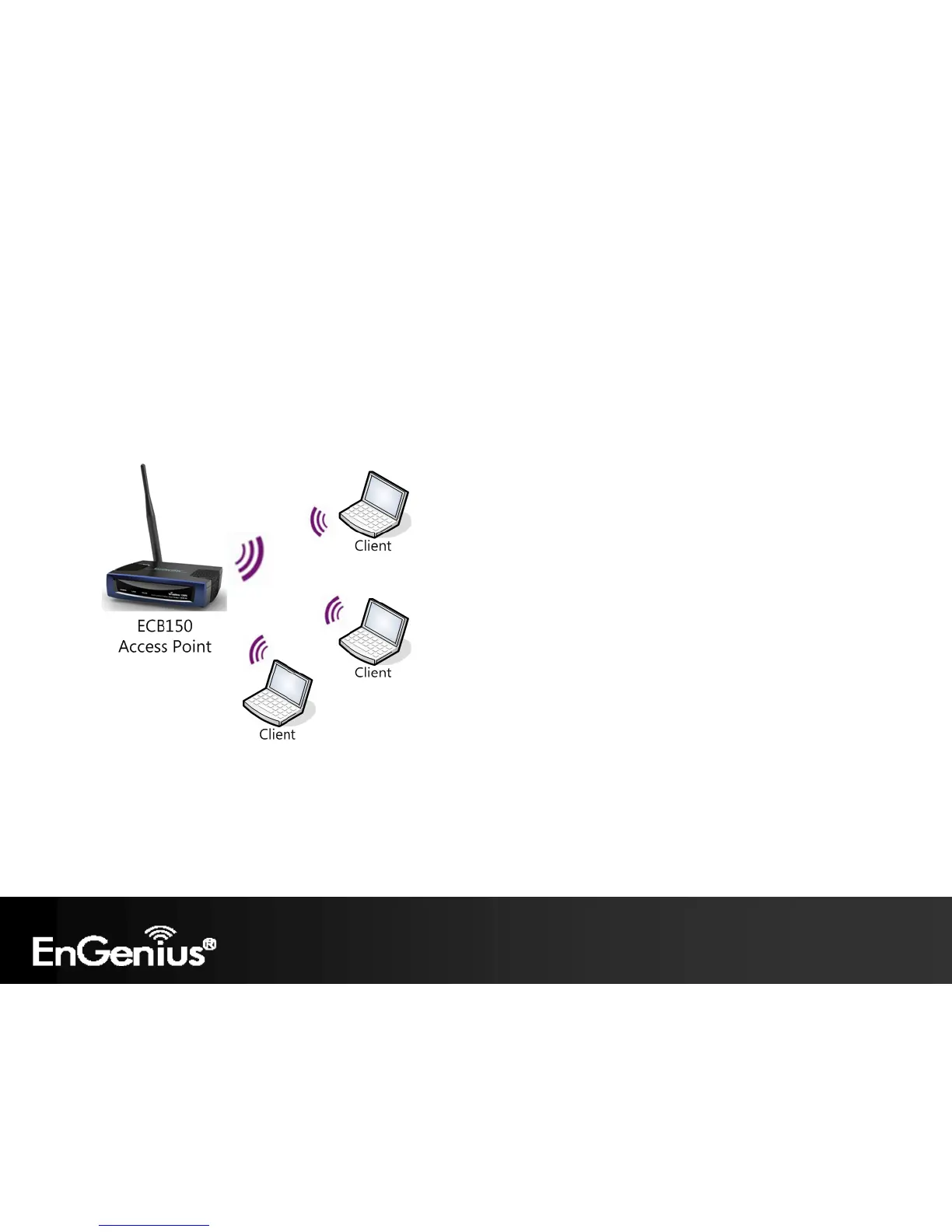 In Access Point Mode, ECB150 behaves likes a central connection for stations or clients that support IEEE 802.11b/g/n