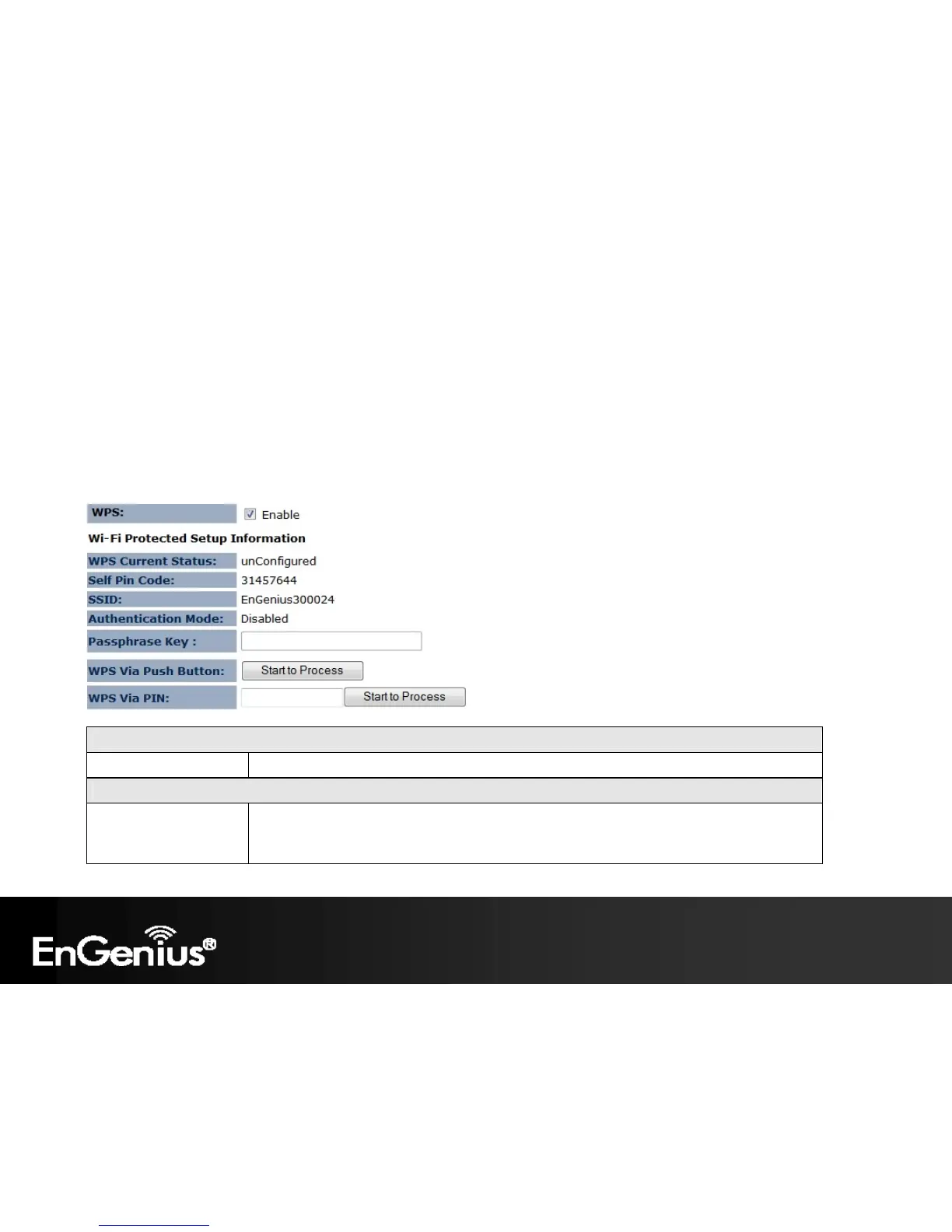 WPS Current Status Shows whether the WPS function is Configured or Un-configured.