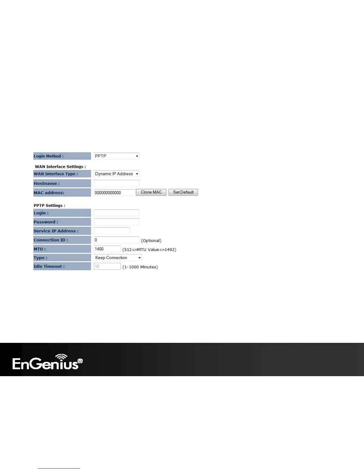 EnGenius ECB150 - Point-To-Point Tunneling Protocol (PPTP)