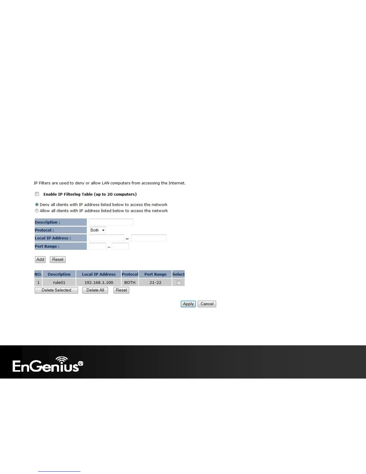 You can choose whether to Deny or only Allow, computer with those IP Addresses from accessing certain Ports.