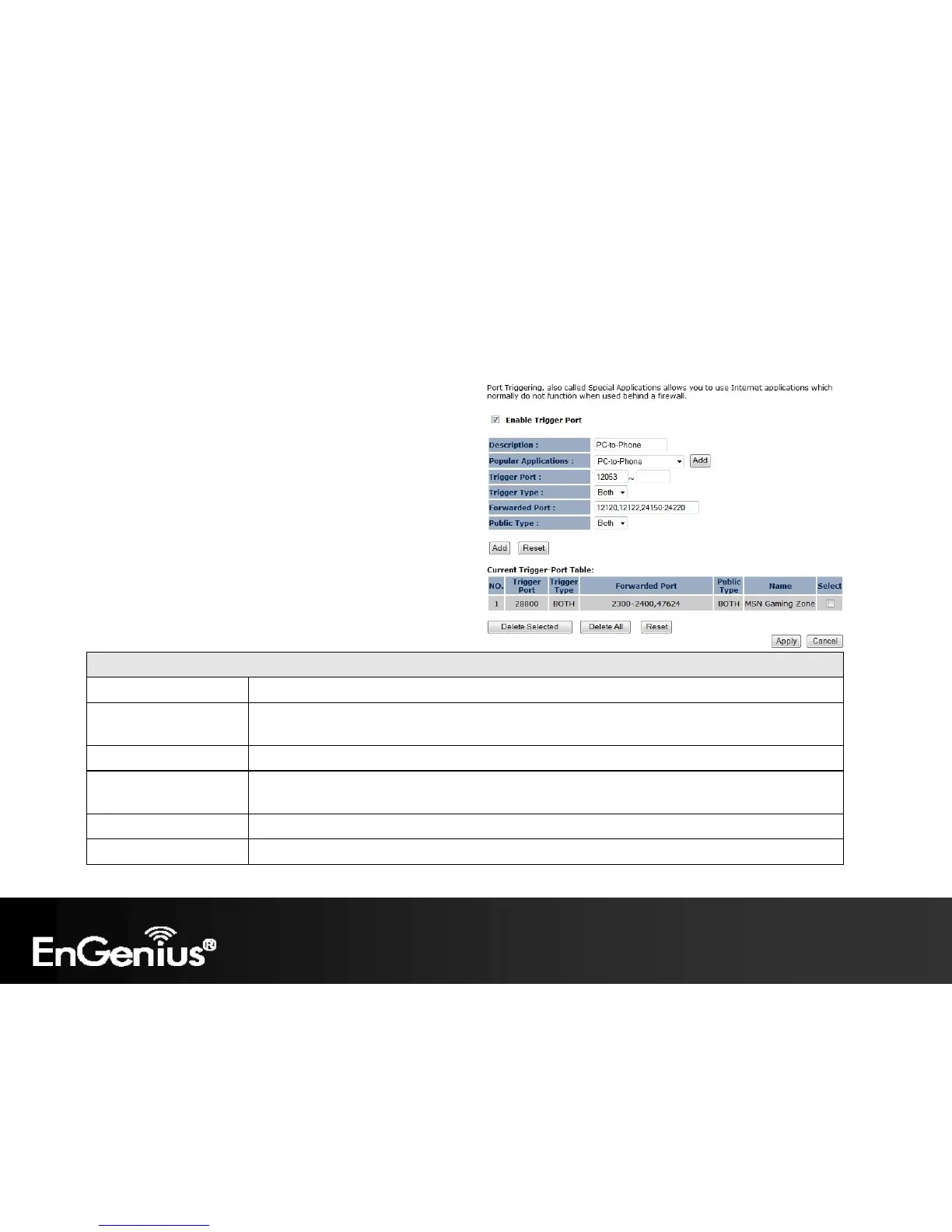 Trigger Port This is the outgoing (outbound) port numbers for this application.