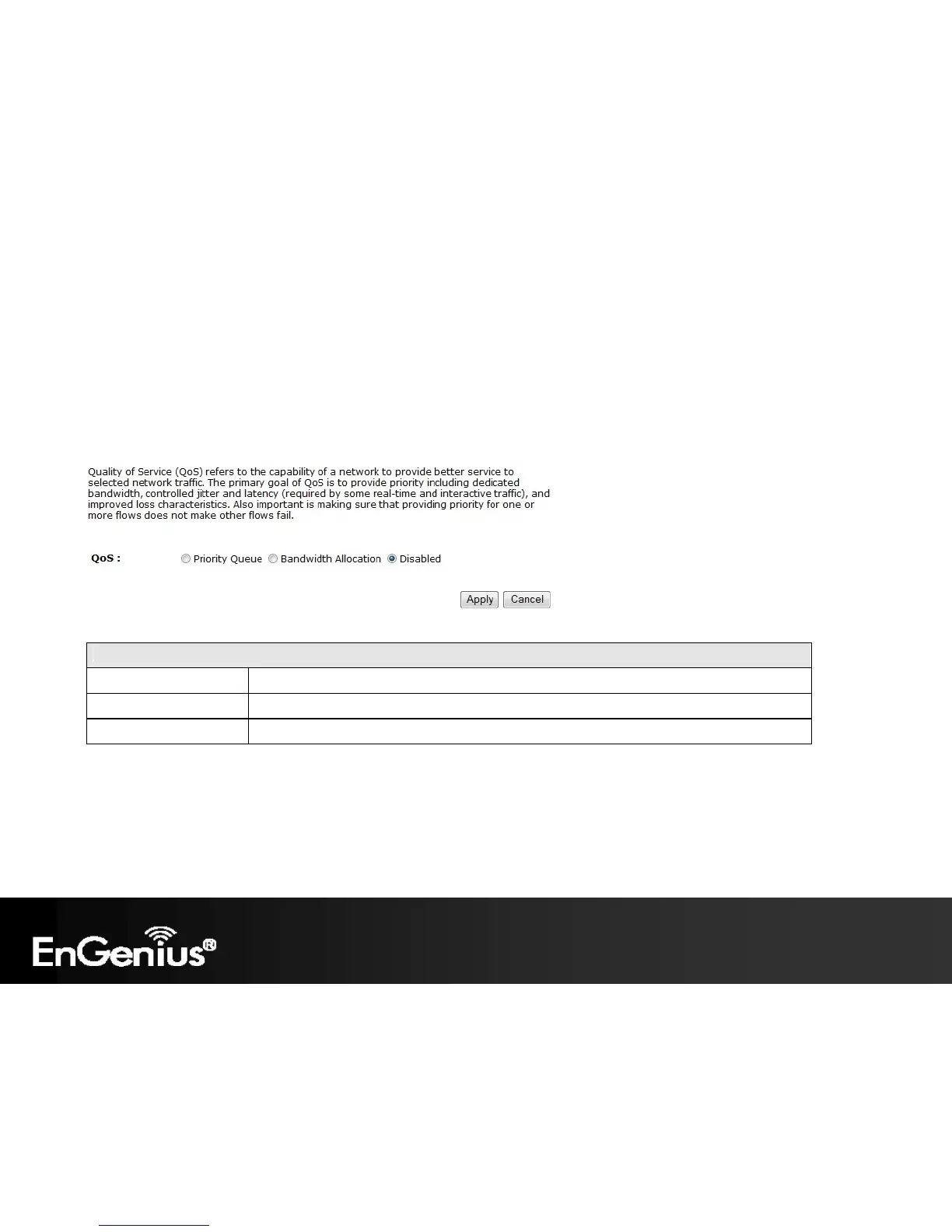 Bandwidth Allocation Sets the QoS method to Bandwidth Allocation.