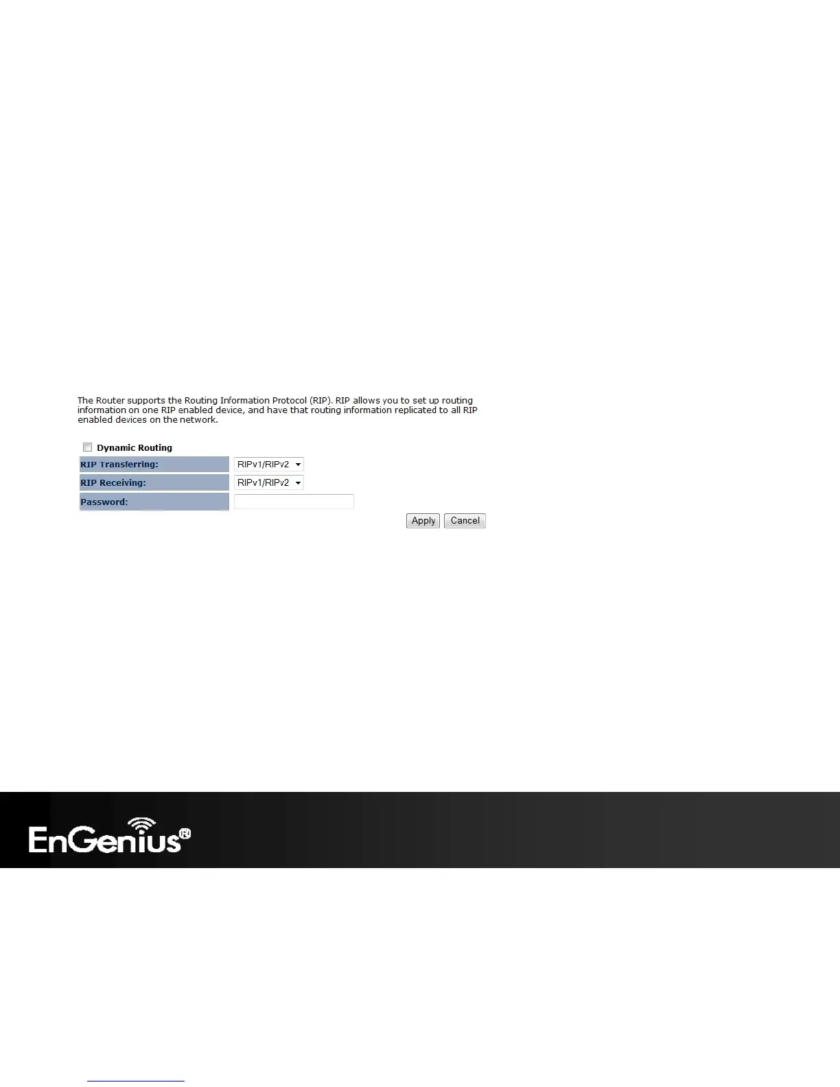 Dynamic routing allows routing tables in routers to change as the possible routes change. This device use RIP to support