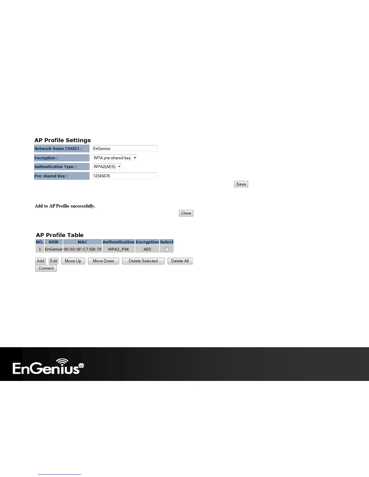 4. Add AP profile successfully, click on [Close] to close the browser.