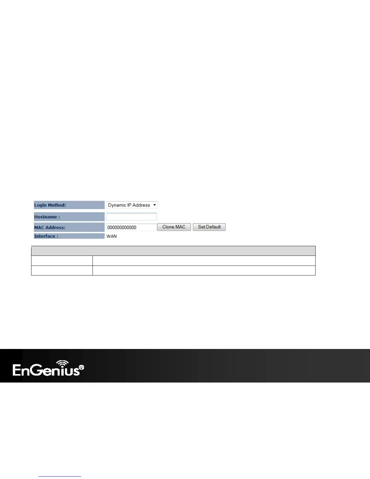 MAC Address The MAC Address that is used to connect to the ISP.