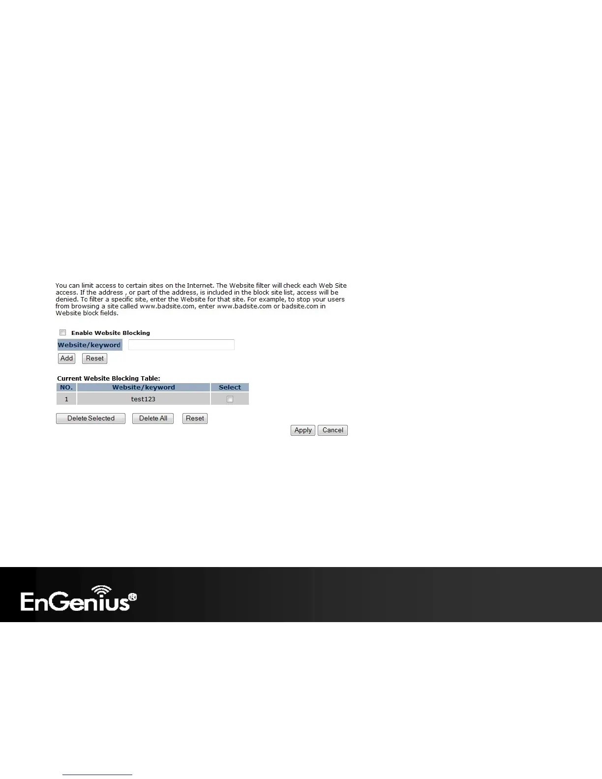 For example, “gamer” has been added to the URL Blocking Table. Any web address that includes “gamer” will be blocked.