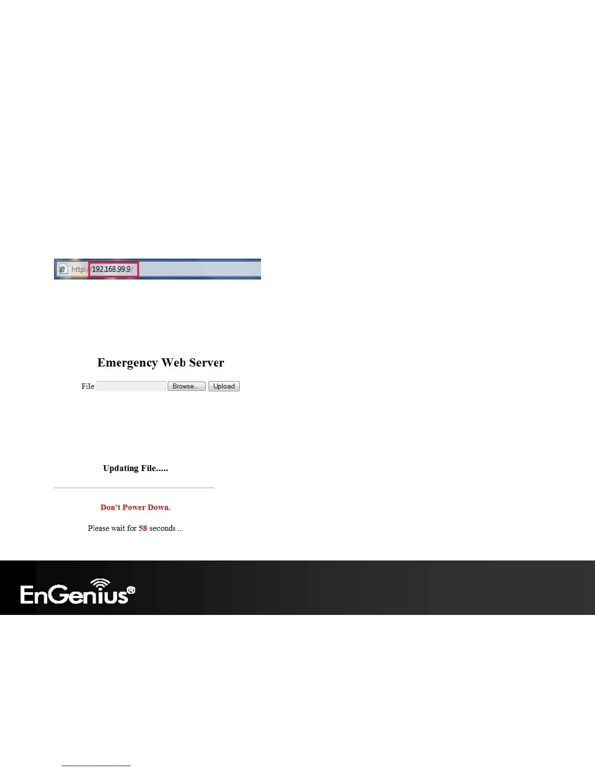 1. Enter IP address: 192.168.99.9 and enter Emergency Upgrade WEB page.
