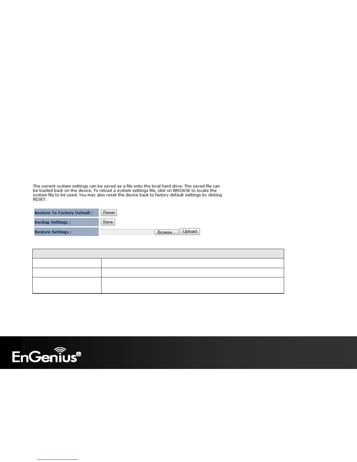 the configurations, you also can re-load the saved configurations into the device through the Restore Settings. If extreme