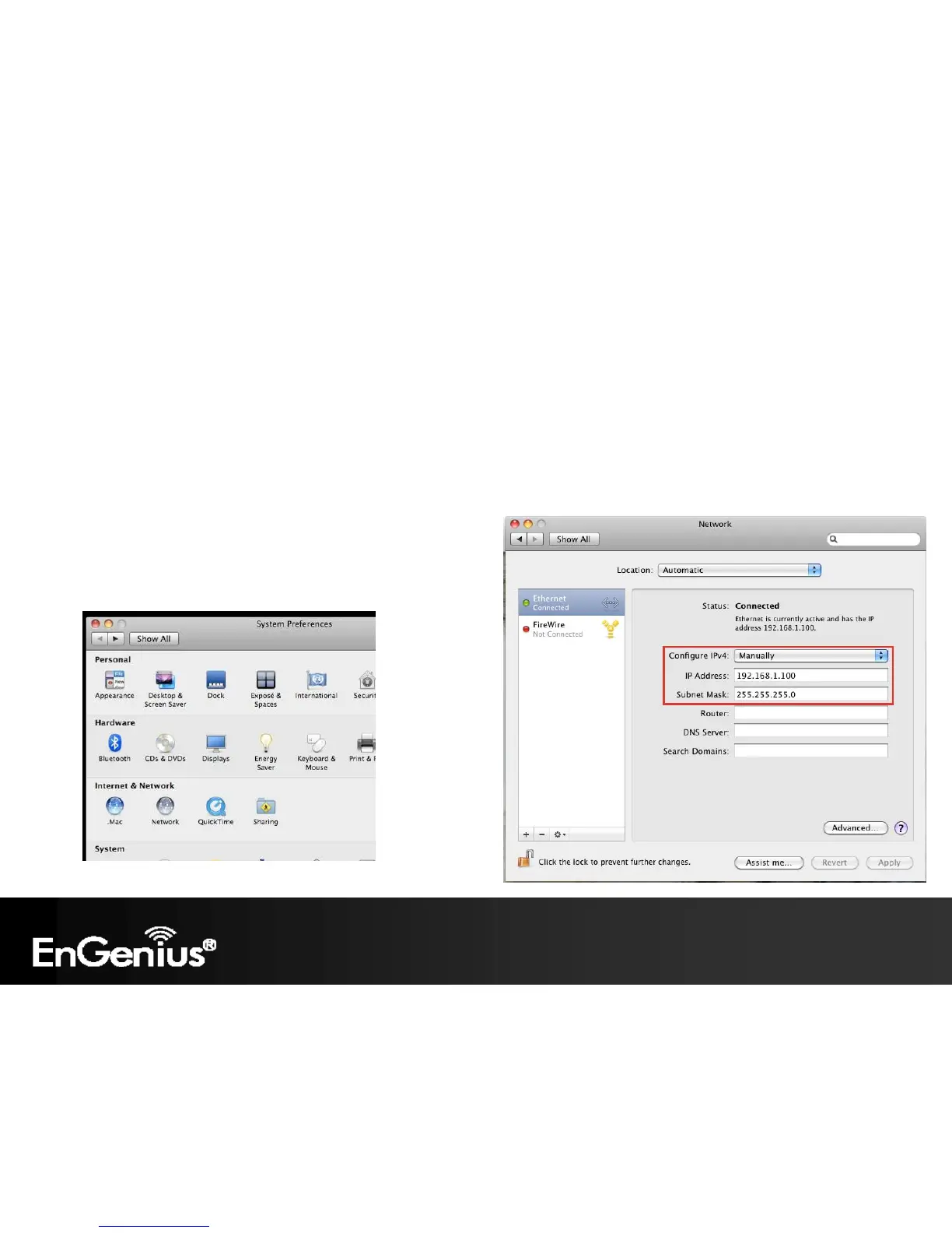 Note: Ensure that the IP address and subnet mask are on the same subnet as the device.