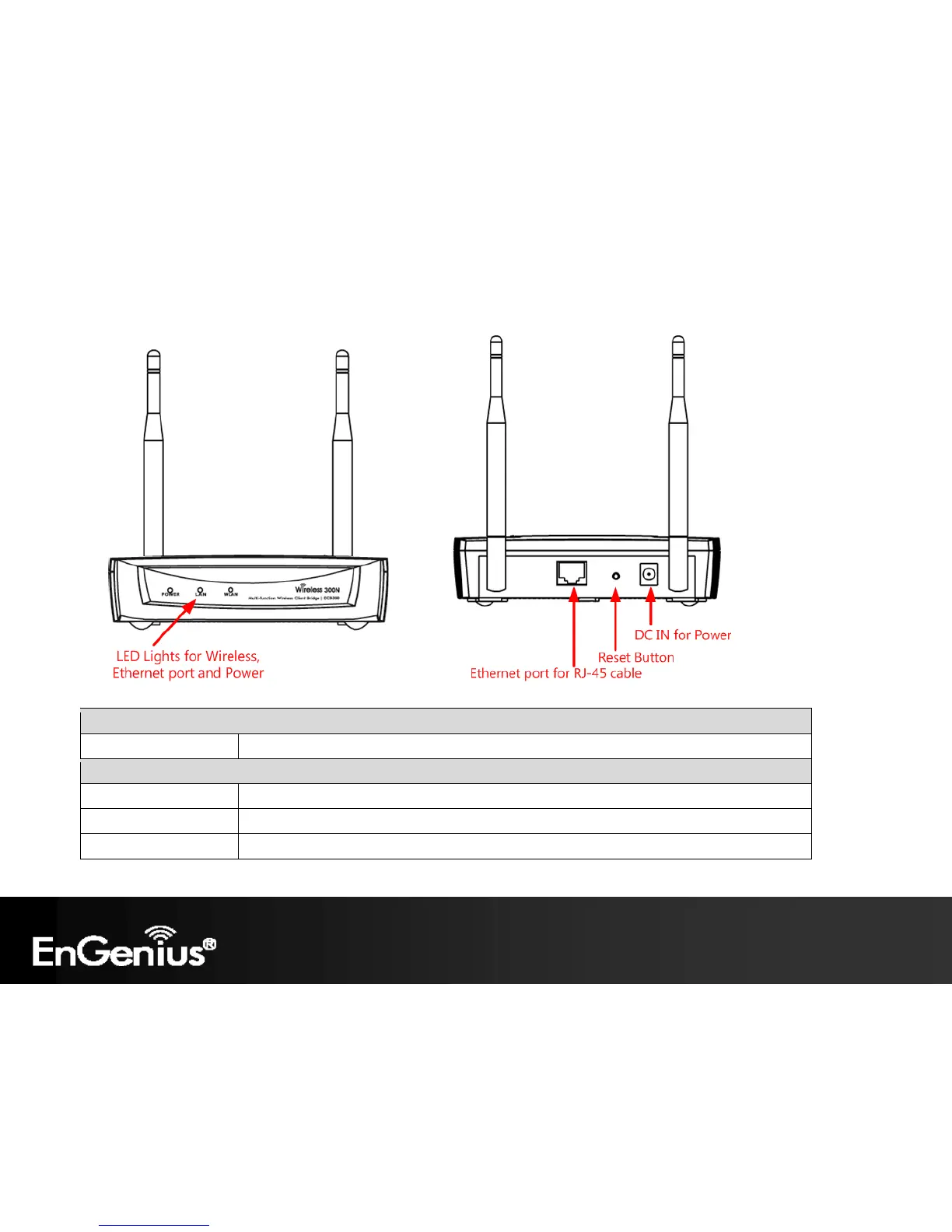 LED Lights LED lights for Wireless, Ethernet port and Power.