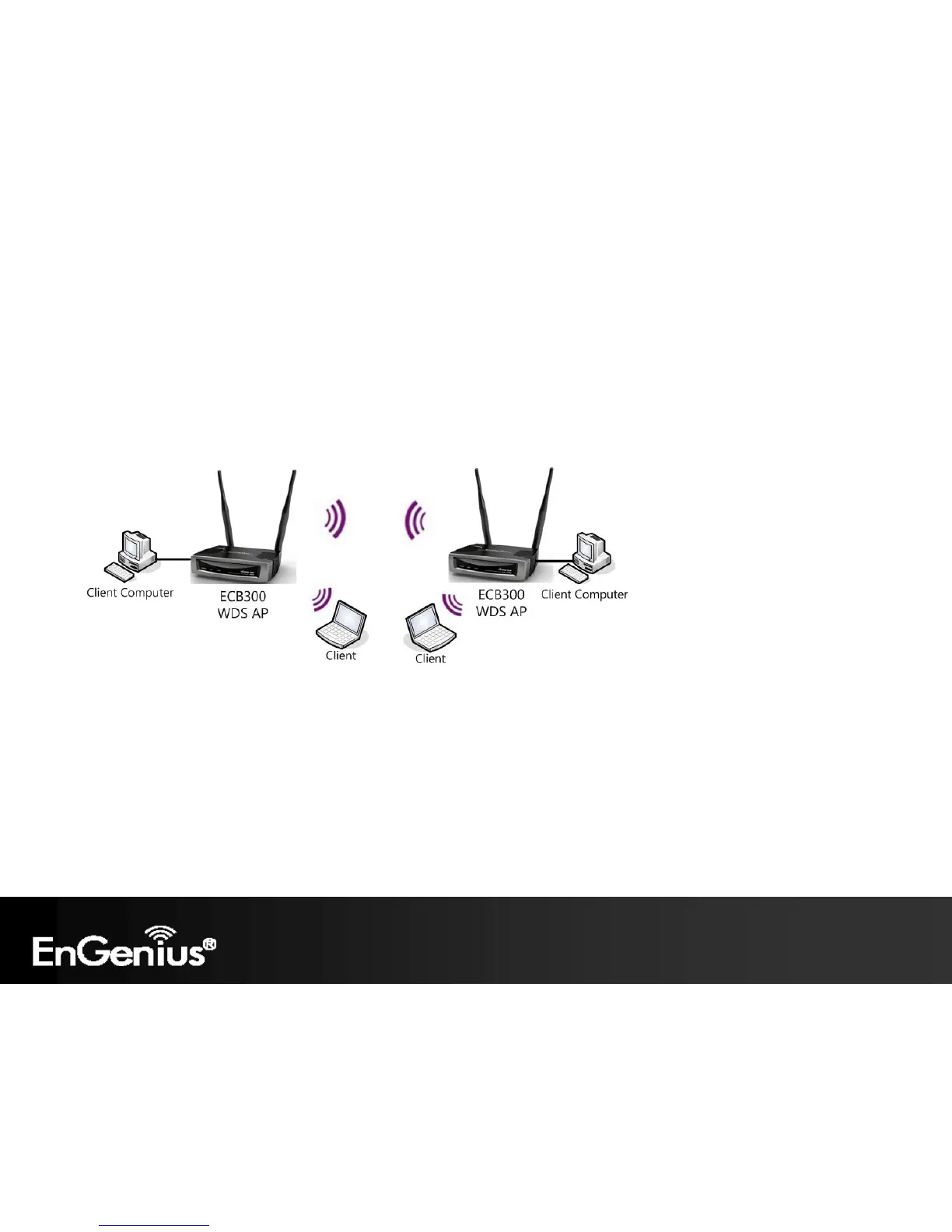 The ECB300 also supports WDS AP mode. This operating mode allows wireless connections to the ECB300 using WDS