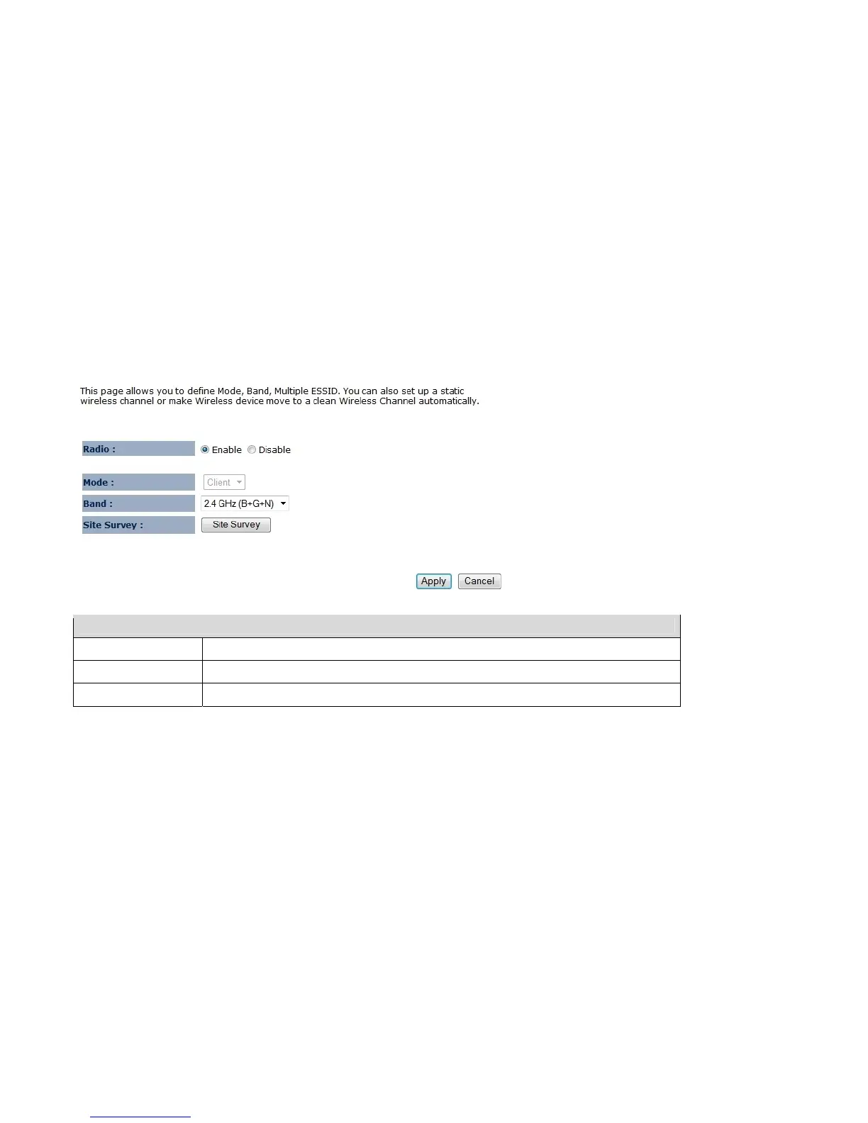 The Basic option of the Wireless menu displays the basic wireless options of the ECB300.