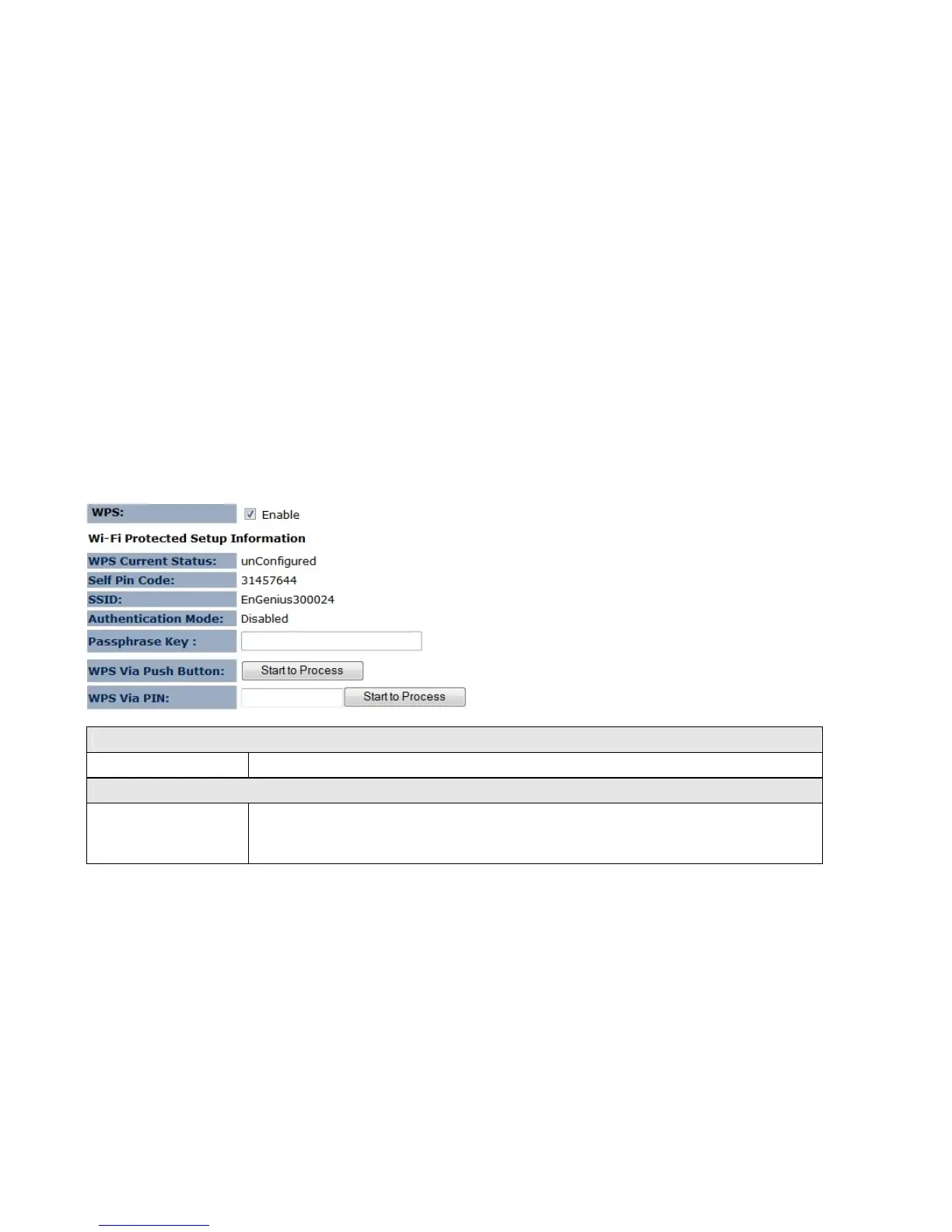 WPS Current Status Shows whether the WPS function is Configured or Un-configured.