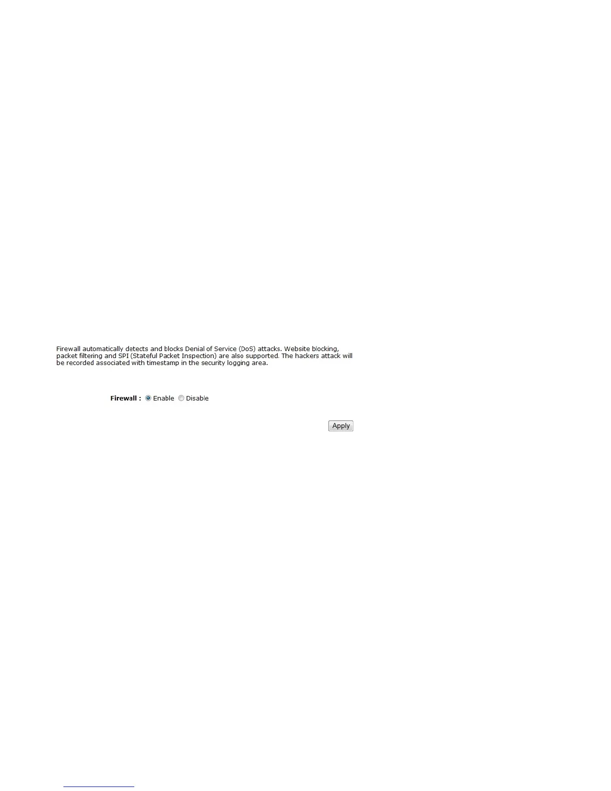 If enabled Firewall service, the Denial of Service (DoS) and SPI (Stateful Packet Inspection) features will also be enabled.