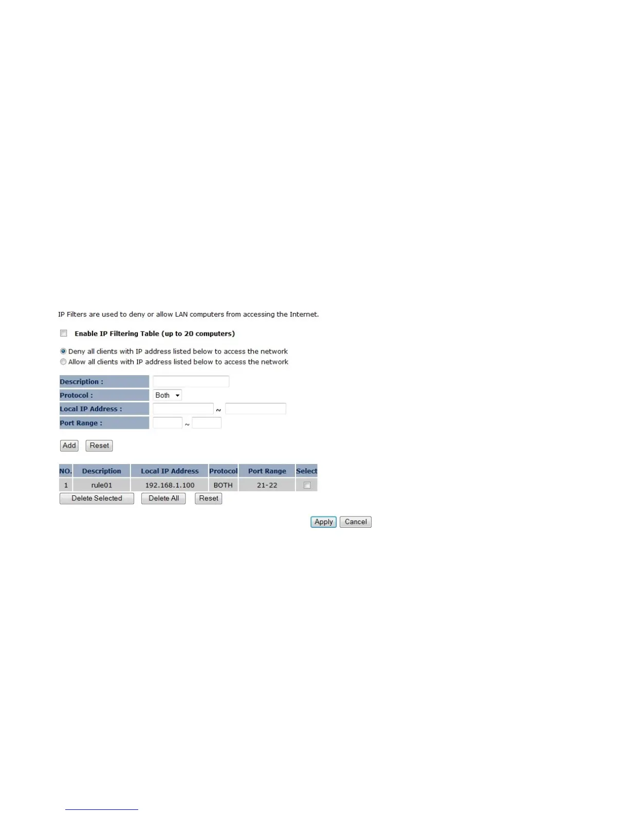 You can choose whether to Deny or only Allow, computer with those IP Addresses from accessing certain Ports.