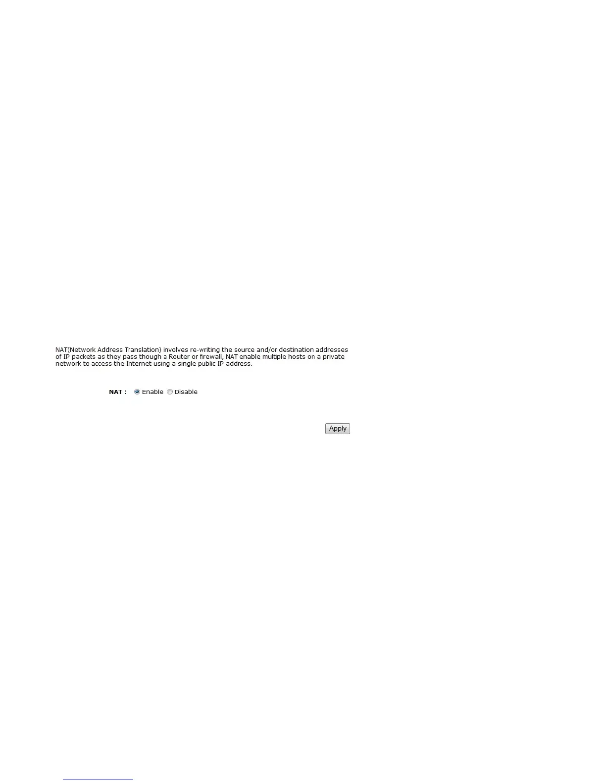 This page allows you to Enable / Disable the Network Address Translation (NAT) feature. The NAT is required to share one