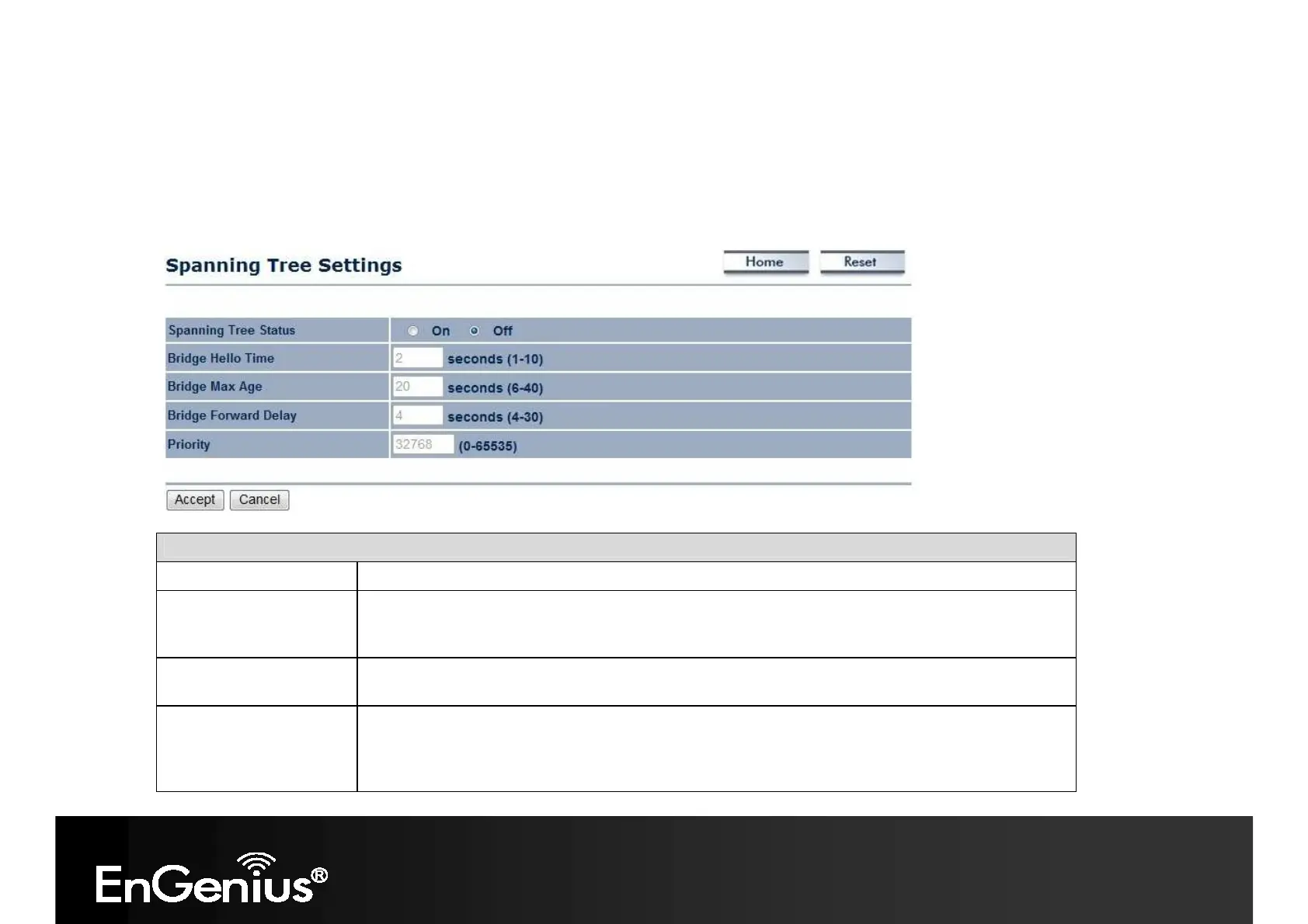 This page allows you to modify the Spanning Tree settings. Enabling Spanning Tree protocol will prevent network loops in