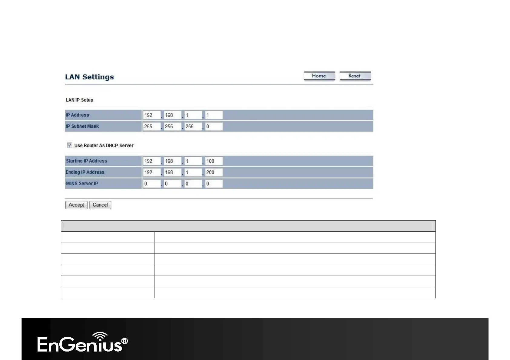 Accept / Cancel Click Accept to confirm the changes or Cancel to cancel and return previous settings.