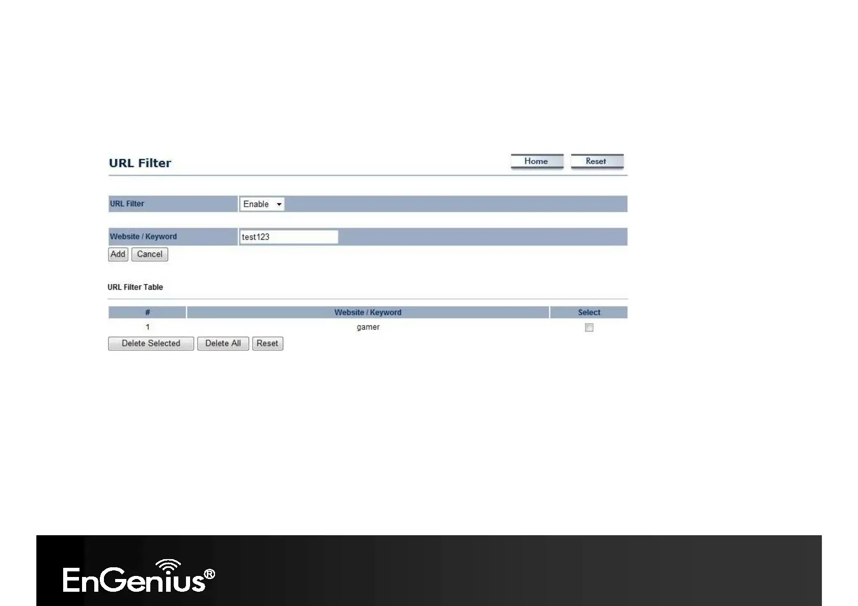 For example, “gamer” has been added to the URL Filter Table. Any web address that includes “gamer” will be blocked.