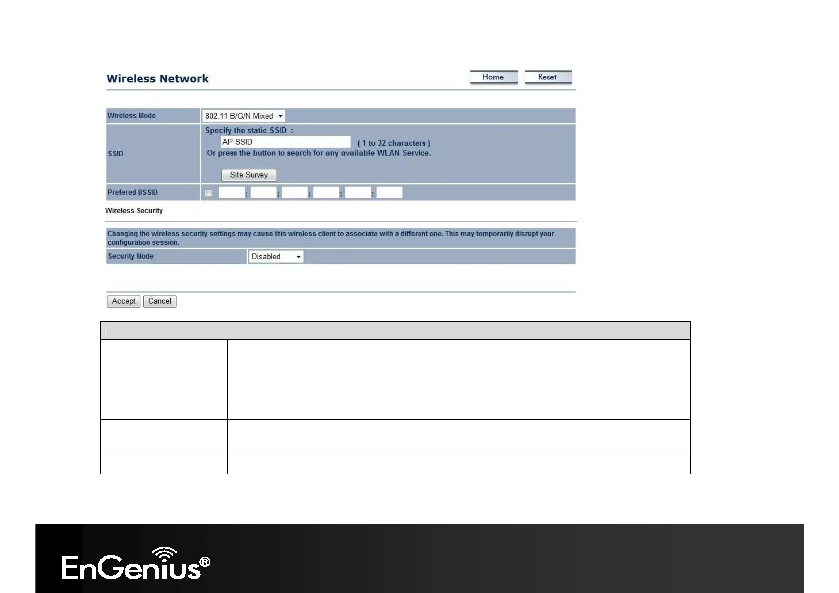Accept / Cancel Click [Accept] to confirm the changes or [Cancel] to cancel and return previous settings.