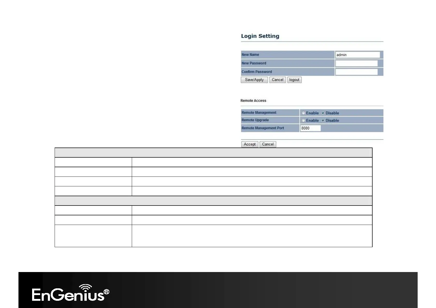 Save/Apply / Cancel Click Save/Apply to apply the changes or Cancel to return previous settings.