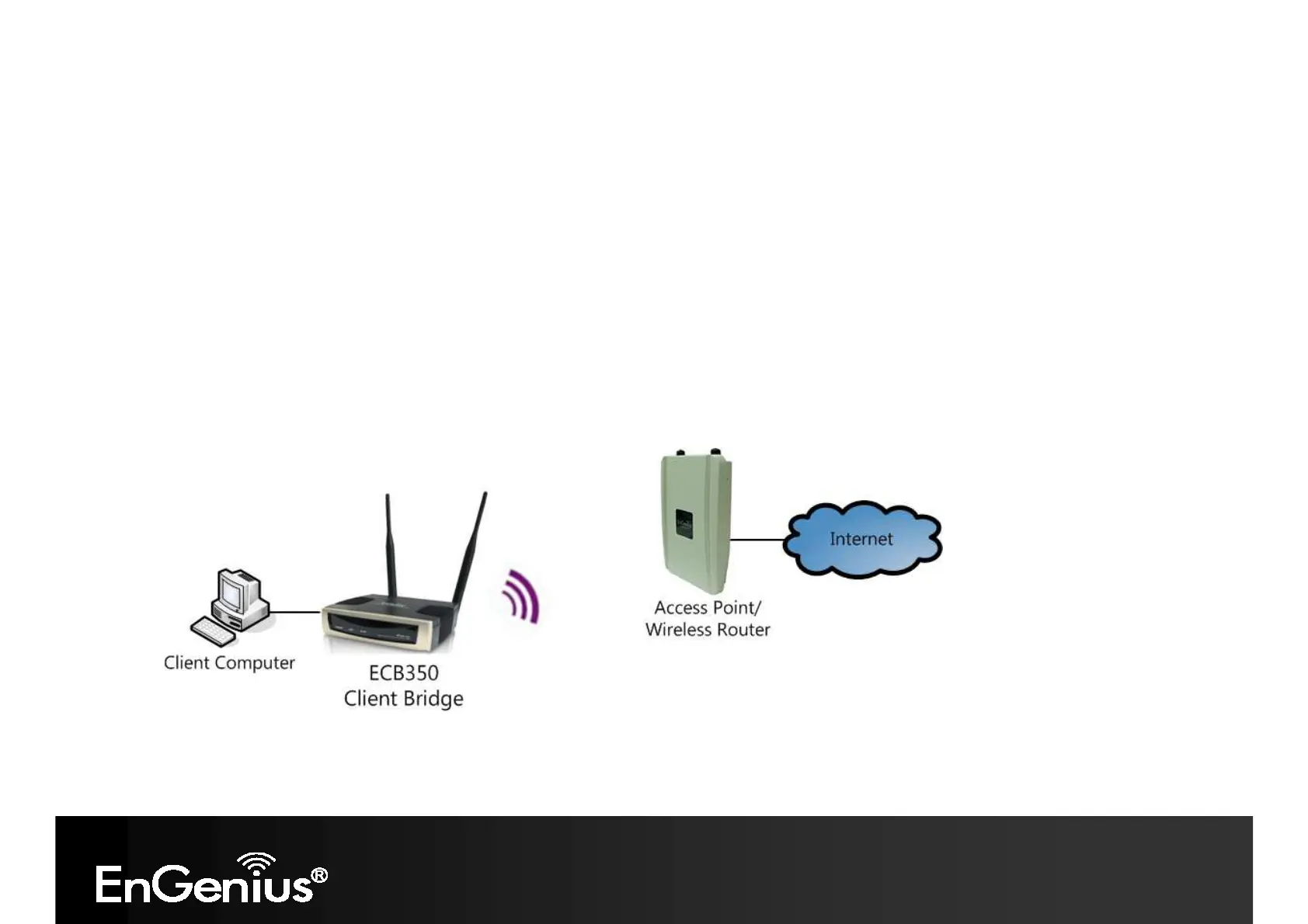In Client Bridge Mode, the ECB350 acts as a wireless dongle that connects to an Access Point to gain wireless access to