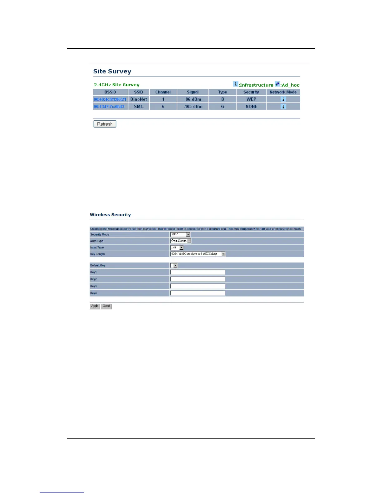 Security Mode: Select WEP from the drop-down list if your wireless network uses