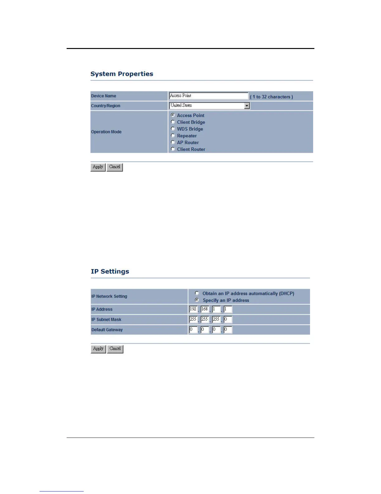 Default Gateway: Specify the IP address of the default gateway.