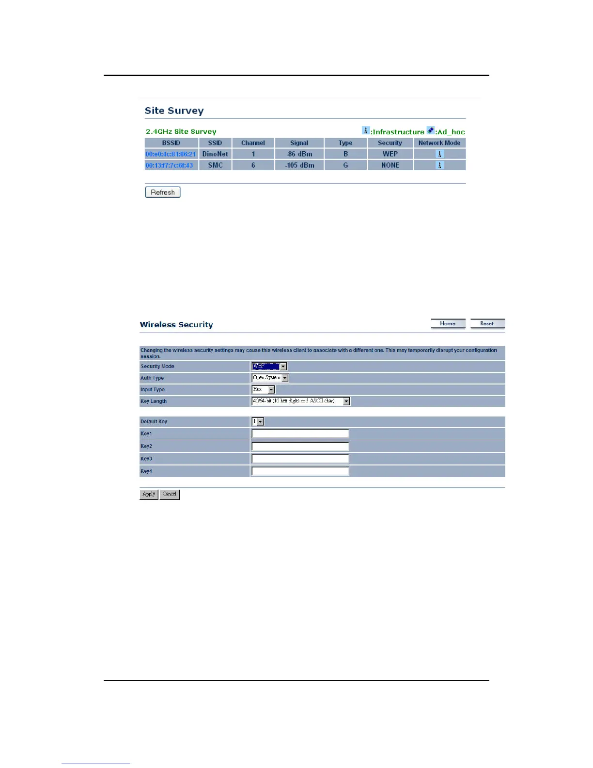Security Mode: Select WEP from the drop-down list if your wireless network uses