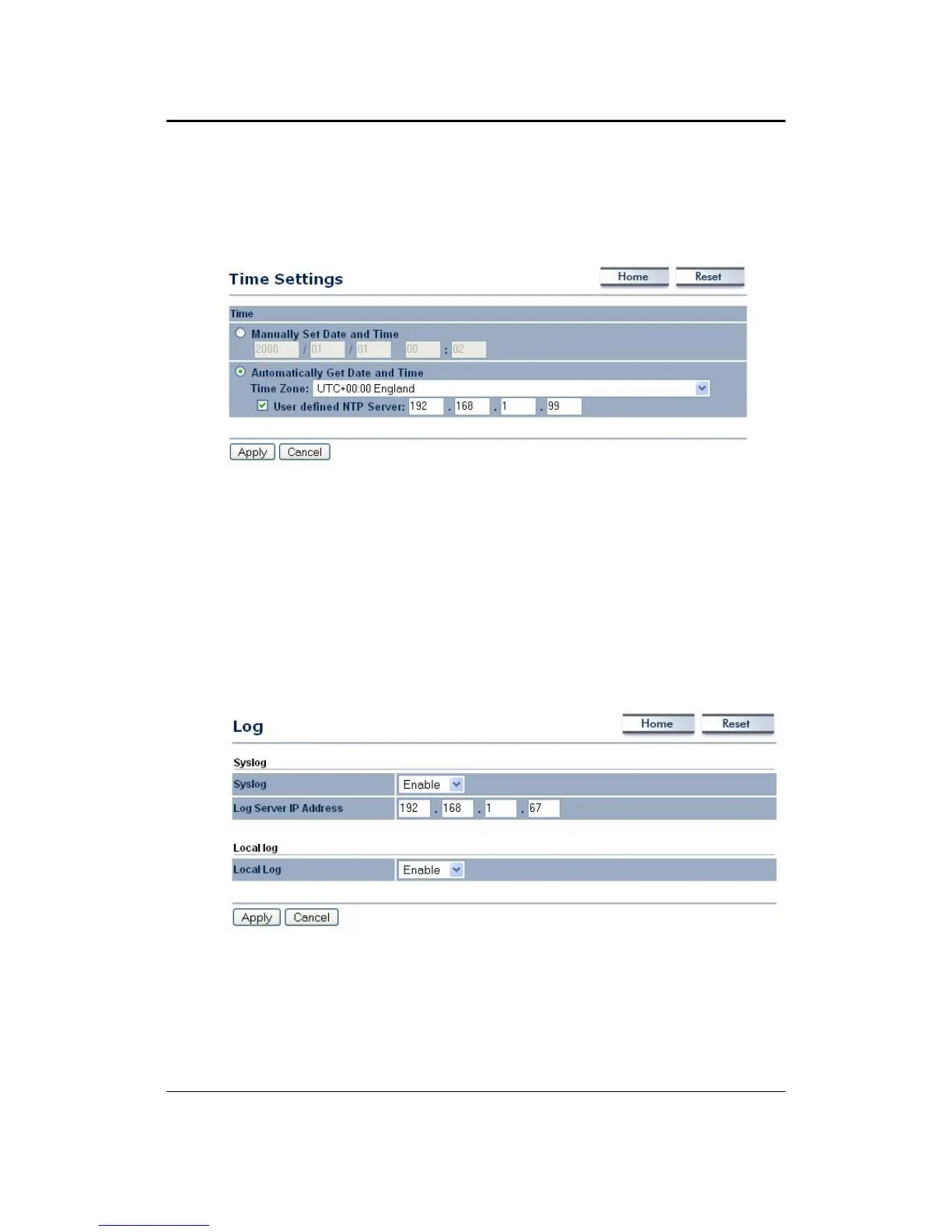 Click on the Time Settings link under the Management menu. This page allows you