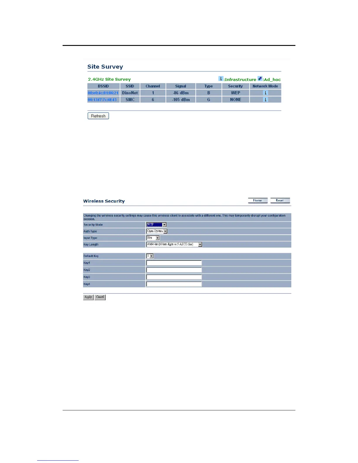 Security Mode: Select WEP from the drop-down list if your wireless network uses