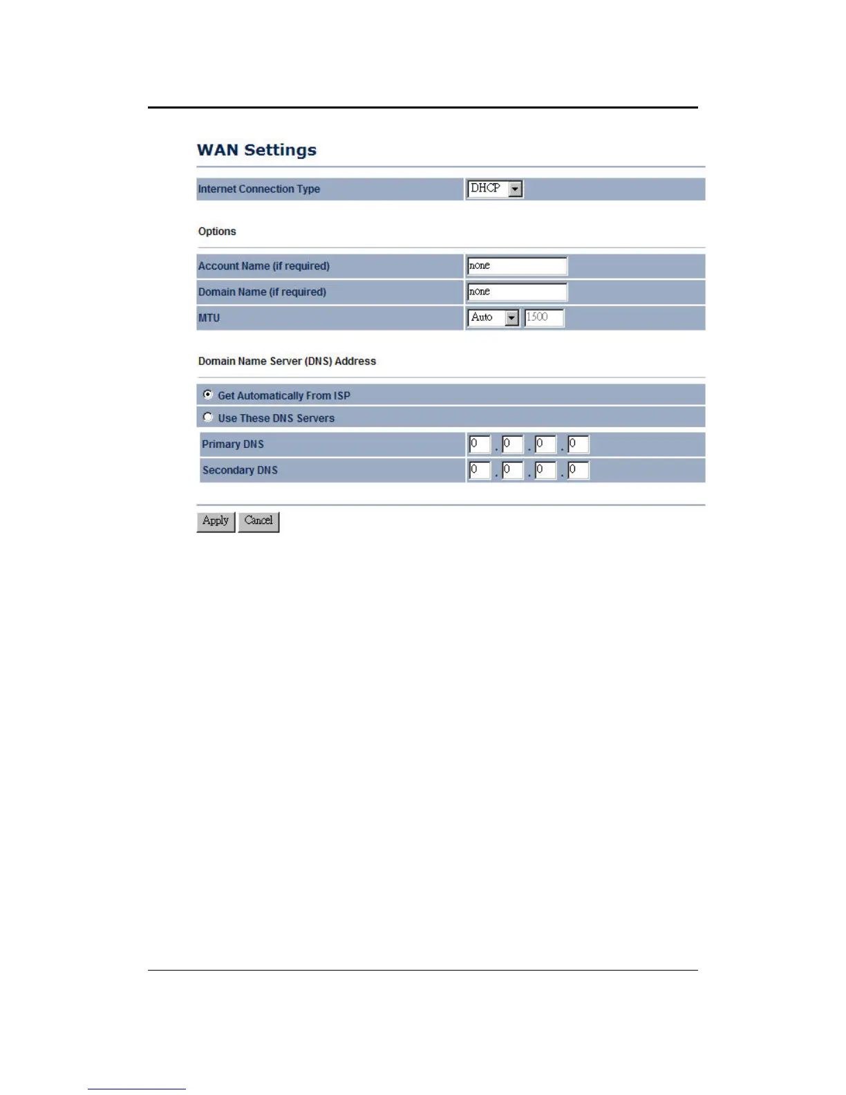 Domain Name Server: Select Get Automatically from ISP if the ISP will provide