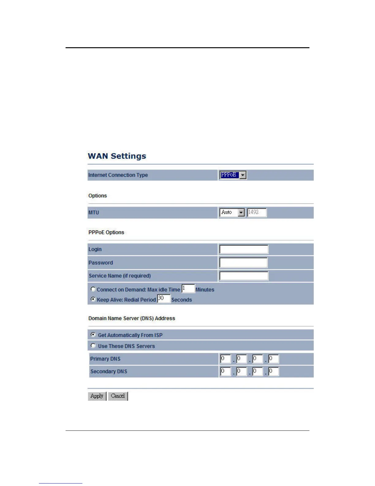 Internet Connection Type: Select PPPoE from the drop-down list.