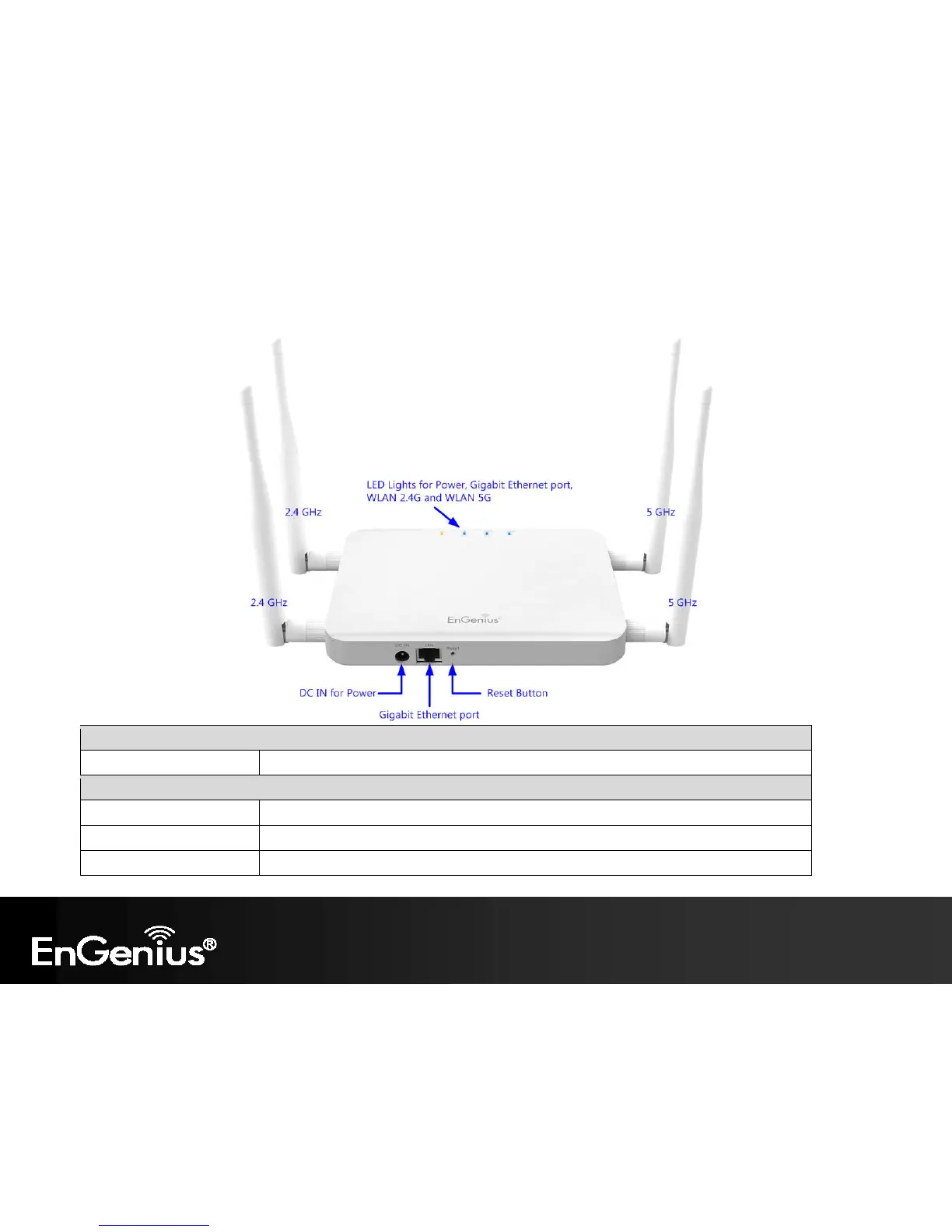 LED Lights LED lights for Power, Gigabit Ethernet port, WLAN 2.4G and WLAN 5G.