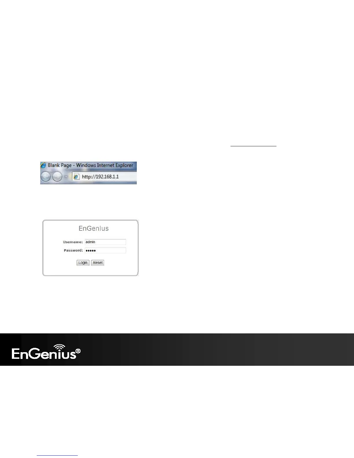 Open a web browser (Internet Explorer/Firefox/Safari) and enter the IP Address http://192.168.1.1