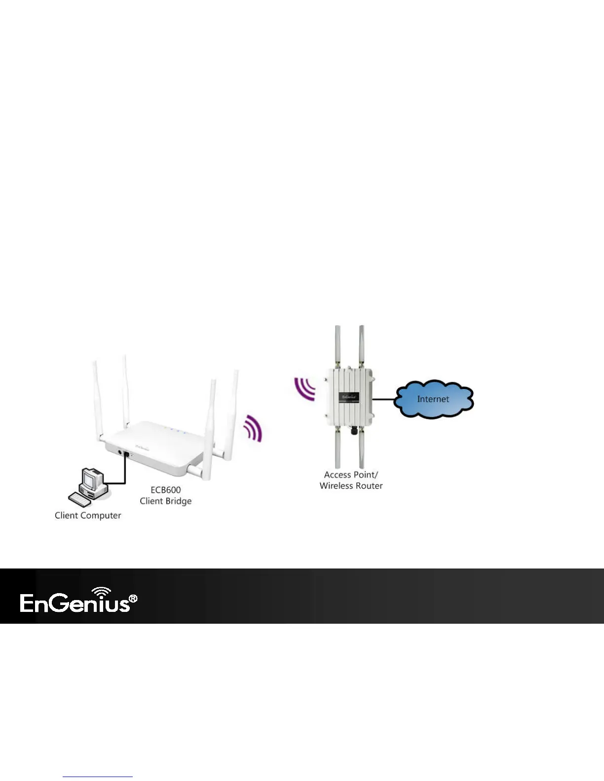 In Client Bridge Mode, the ECB600 essentially acts as a wireless adapter that connects to an access point to allow a system