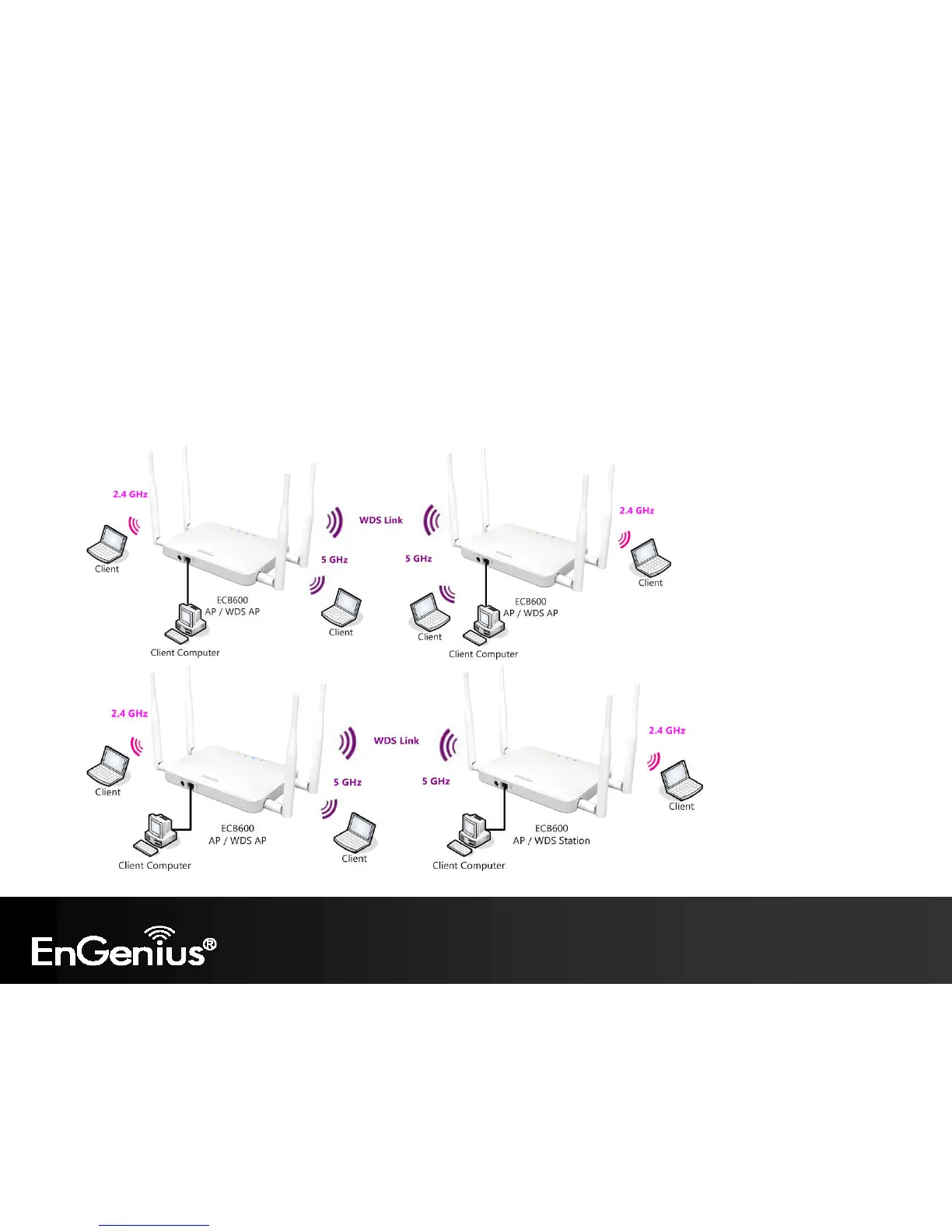 The ECB600 also supports WDS AP mode. This operating mode allows wireless connections to the ECB600 using WDS