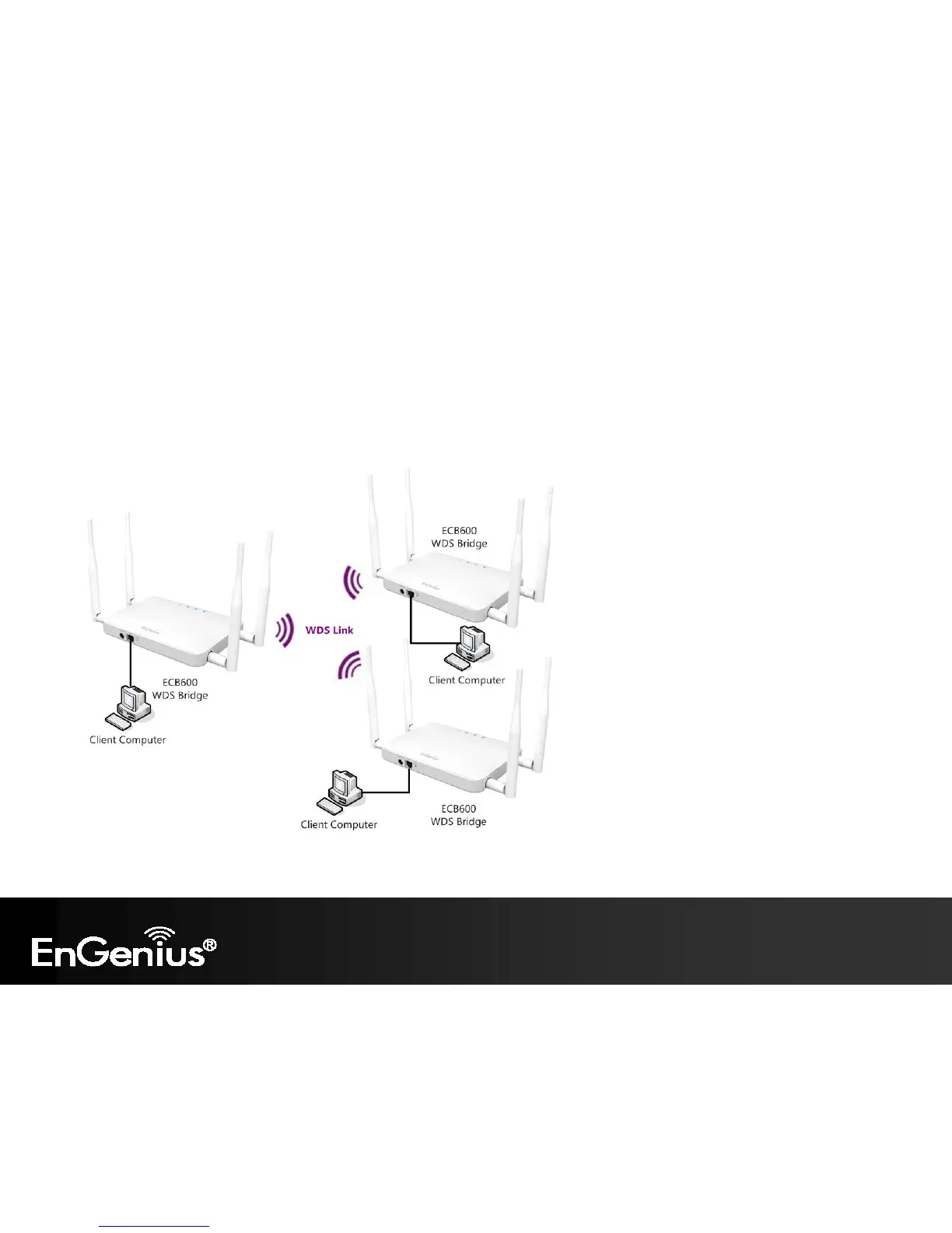 In WDS Bridge Mode, the ECB600 can wirelessly connect different LANs by configuring the MAC address and security