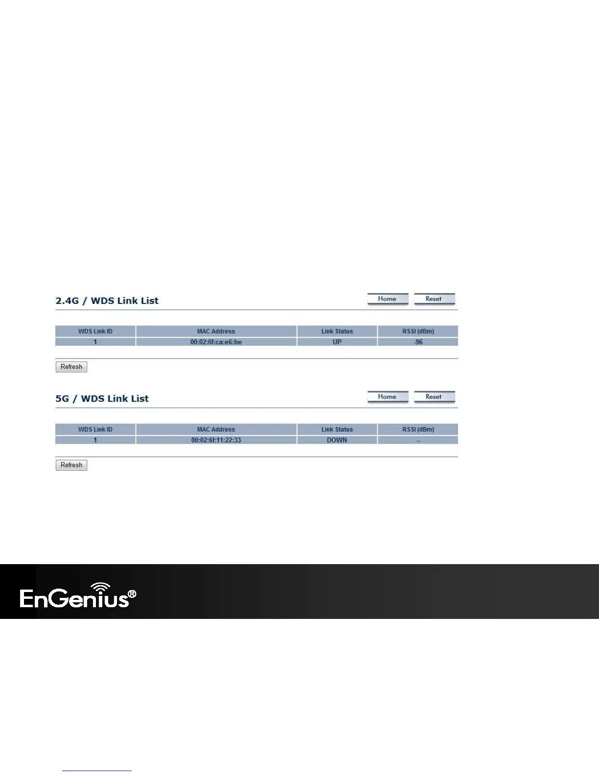 Click on the 2.4G/5G WDS Link List link under the Status menu. This page displays the current status of the WDS link,