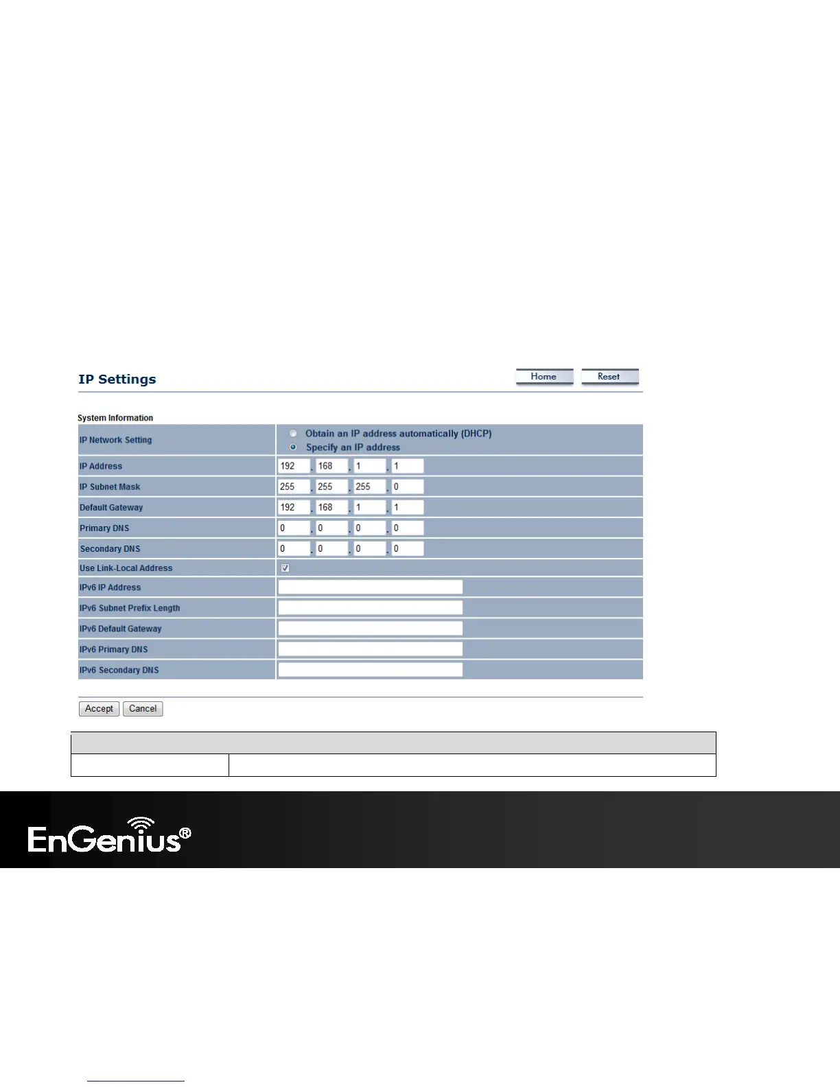 IP Network Setting Select whether the device IP address will use the static IP address specified in the IP Address