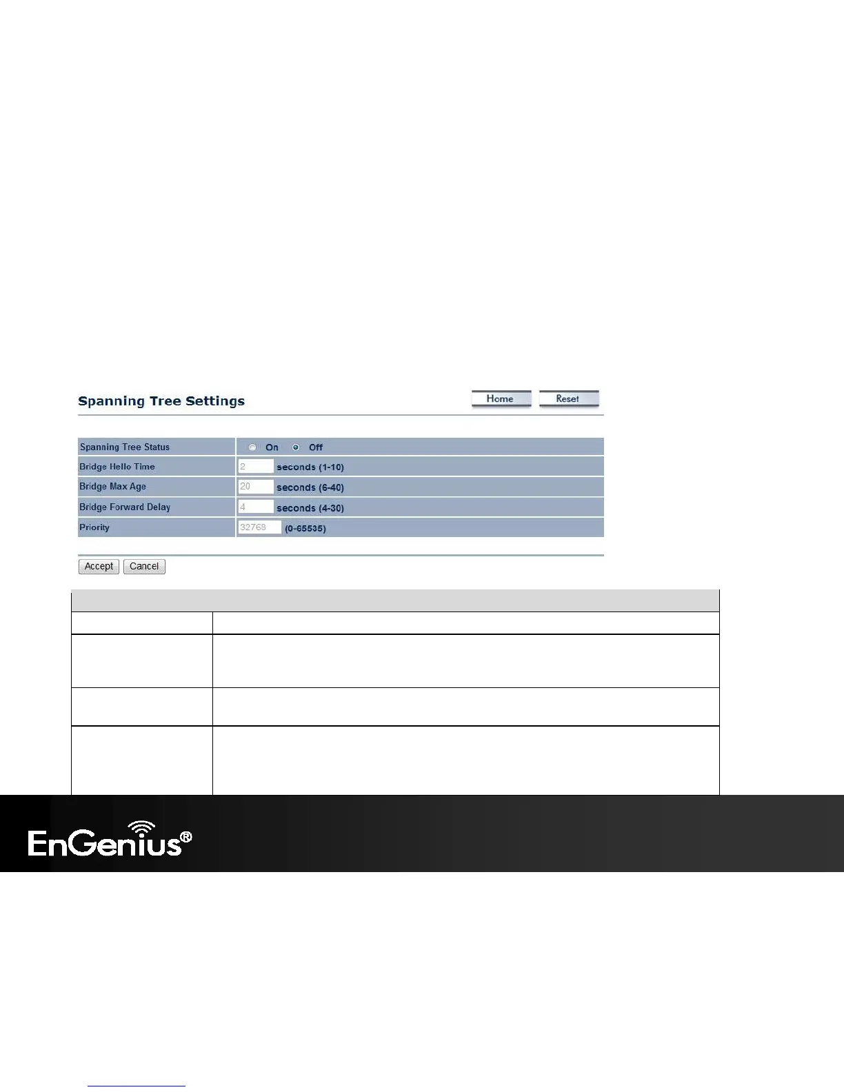 This page allows you to modify the Spanning Tree settings. Enabling Spanning Tree protocol will prevent network loops in