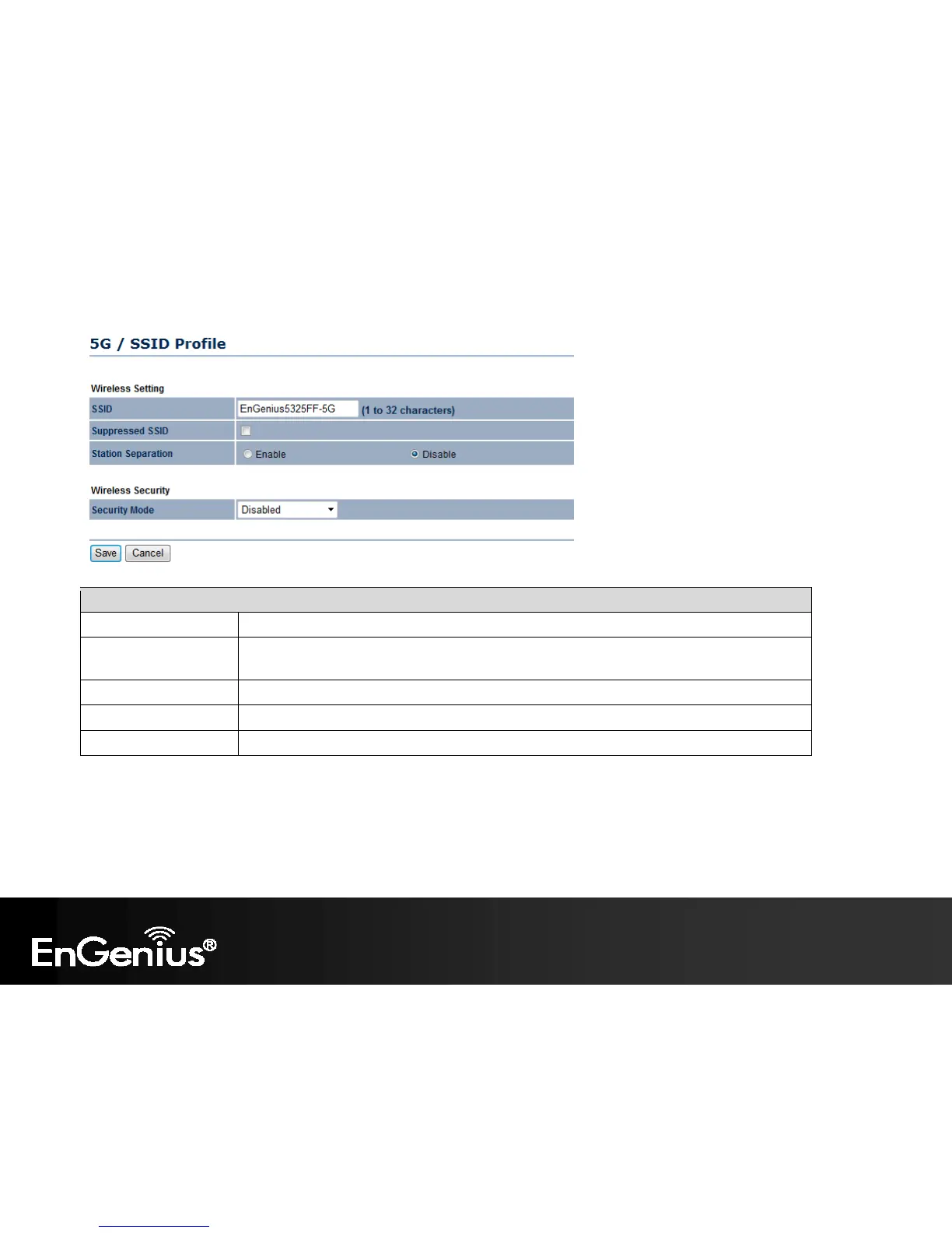Save / Cancel Click Save to accept the changes or Cancel to cancel and return previous settings.