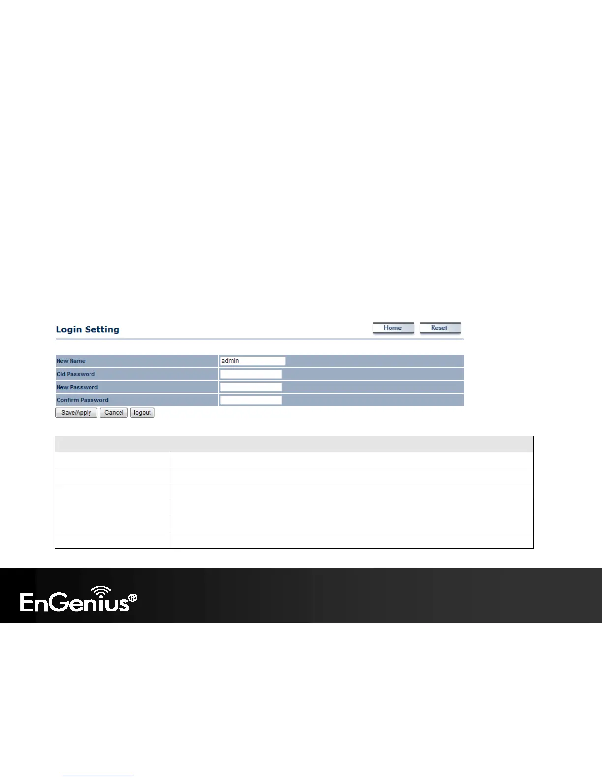 New Name Enter a new username for logging in to the New Name entry box.