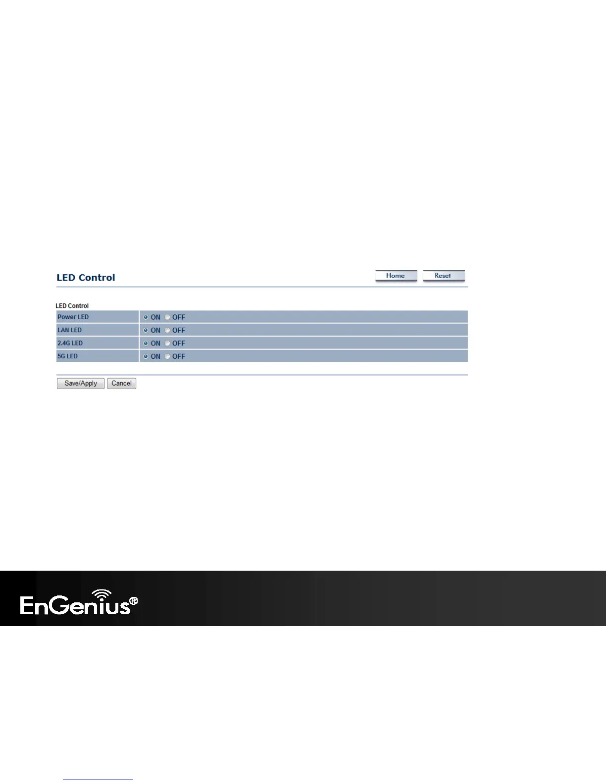 This page allows you to control LED on/off for Power, LAN interface and 2.4G/5G WLAN interface.